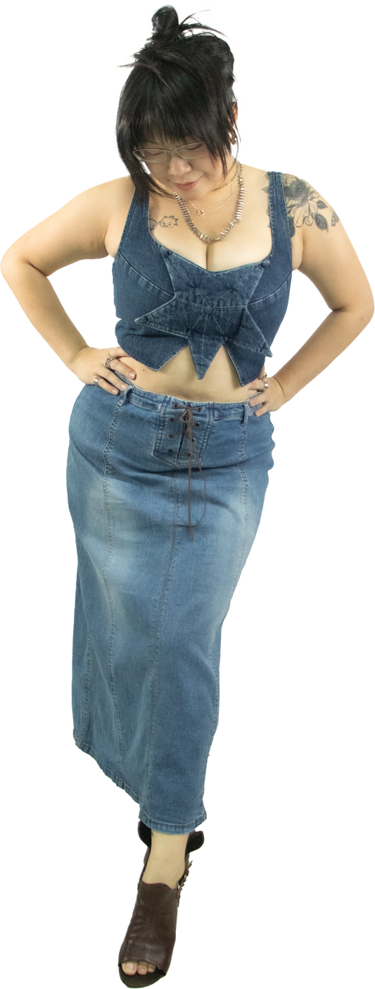 Bella Low Rise Lace Up Denim Skirt