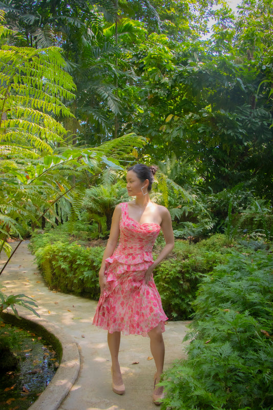 Indonesian Designer Rose One Shoulder Dress