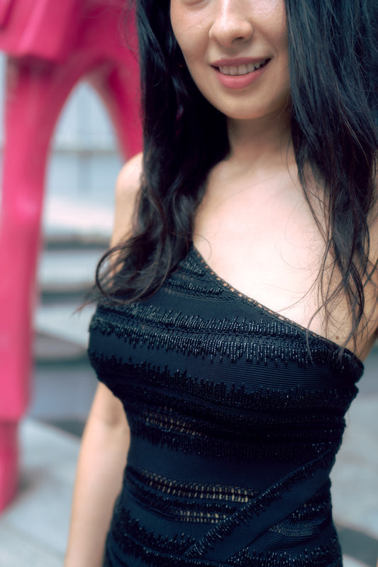 Indonesian Designer Y2K Beaded Burgundy Prom Halter Dress