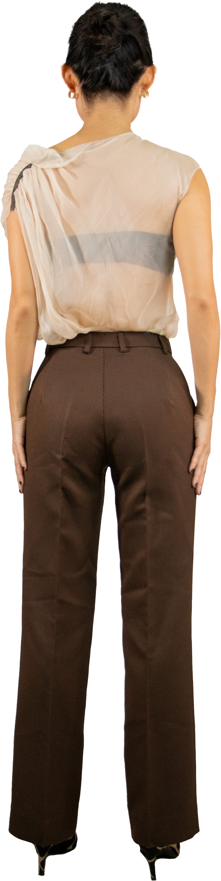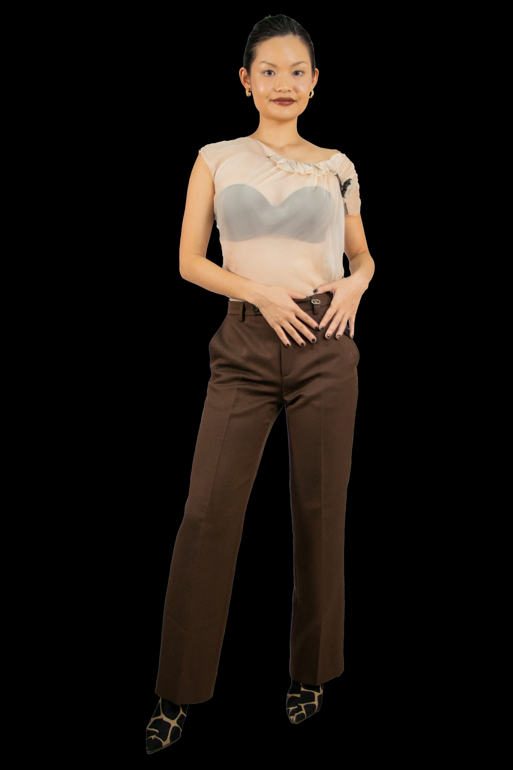 Fresh off the runway, this delicate chiffon silk top is from the brand's SS 2002 fashion show. Though it was paired with a cardigan, this top is actually sleeveless in real life.