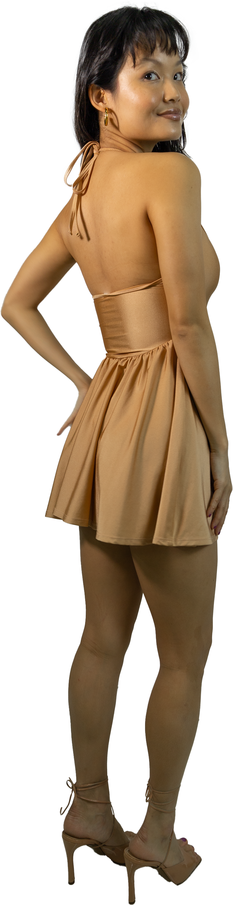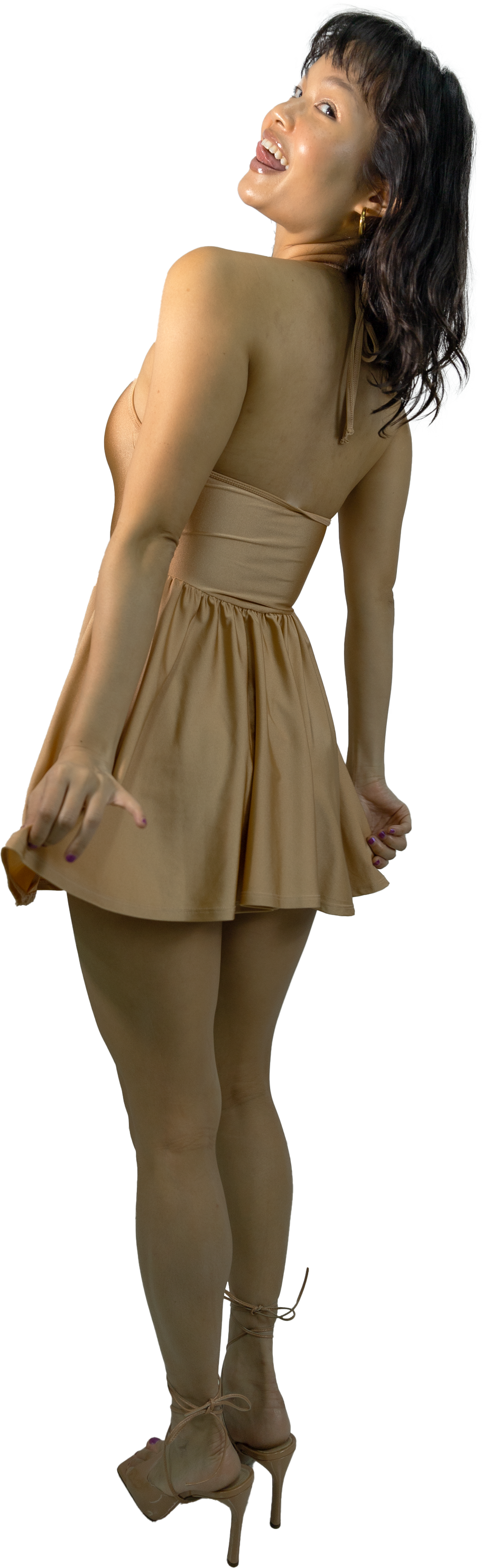 These nude nylon tricot dresses are mega RARE and hard to come by! The nylon tricot dresses were made pre-2016. The size S has a circle skater skirt whereas the size XS has a asymmetrical skater skirt.