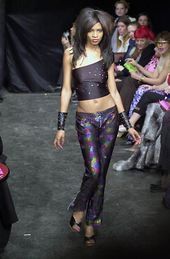 Another icon from the Fall 2000 collection, this polkadot dress features zig ziag embroidery and beads dripping at the hem. The polkadots were embroidered on the fabric as seen on the runway.