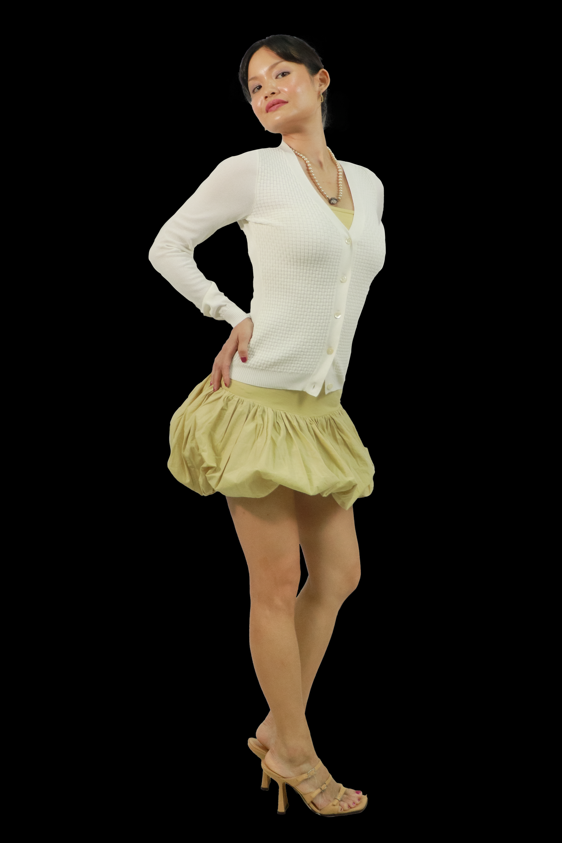 This white knitted cardigan is more than just a cardigan. You'll put it on as if it's your favorite. Formerly called Moschino Cheap & Chic, Boutique Moschino changed their name in 2014. Even though this was most likely made in the mid '10s, the cardigan is ahead of its wime with a woven texture on the outside.