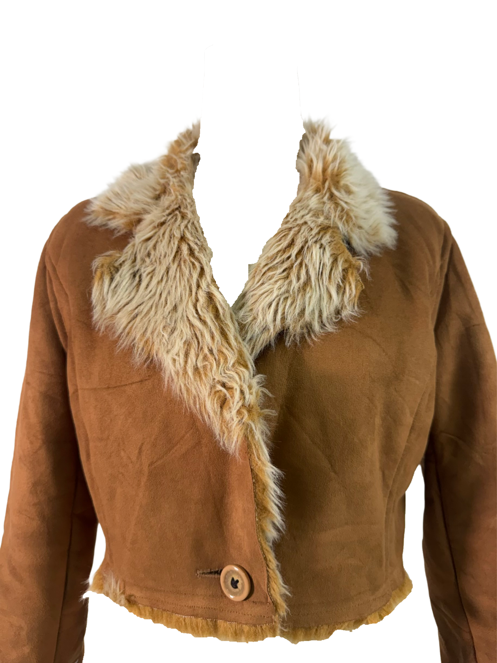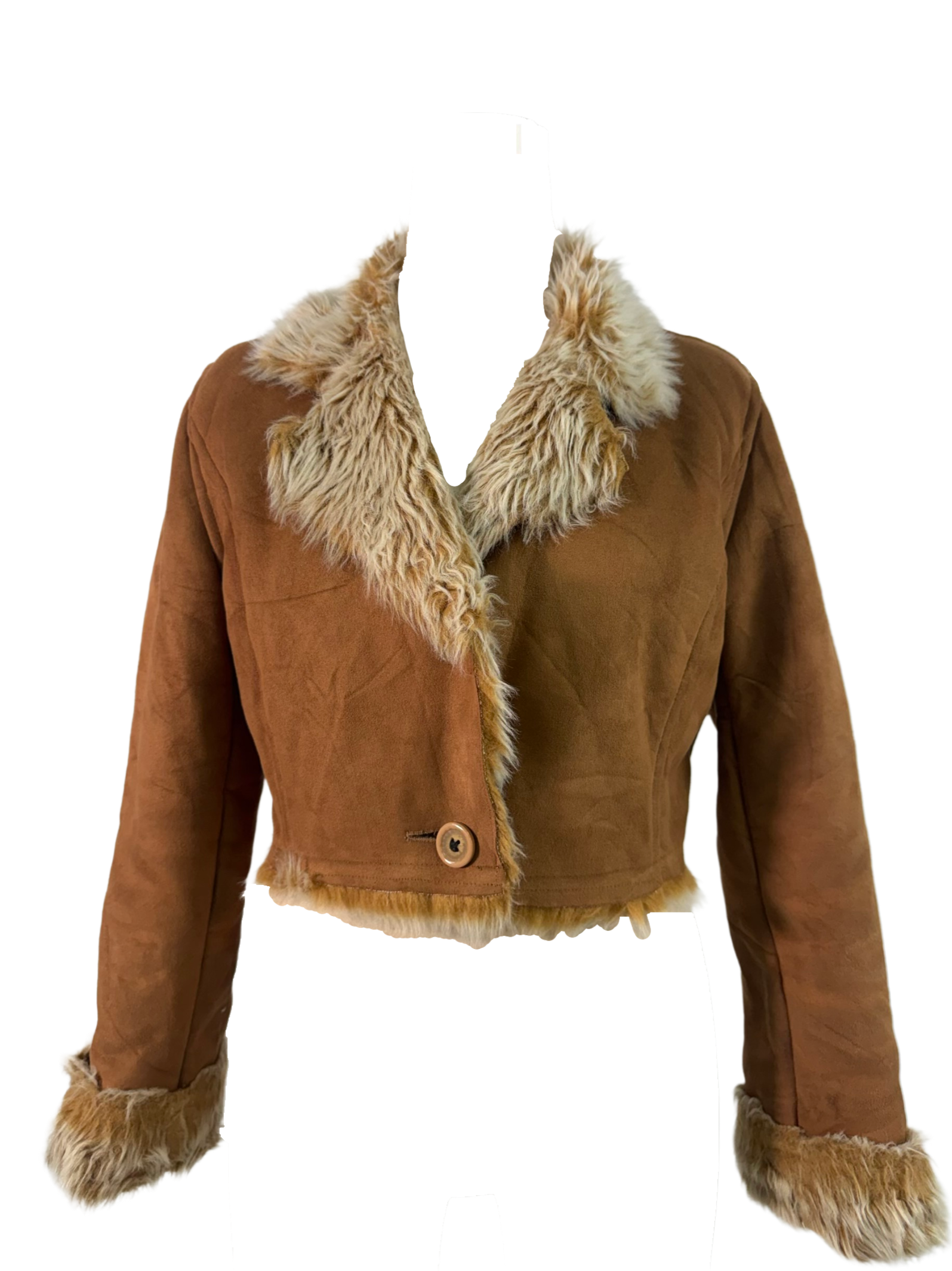 Soft faux suede with plush faux fur trim, cropped to perfection. Effortlessly luxe, endlessly wearable.