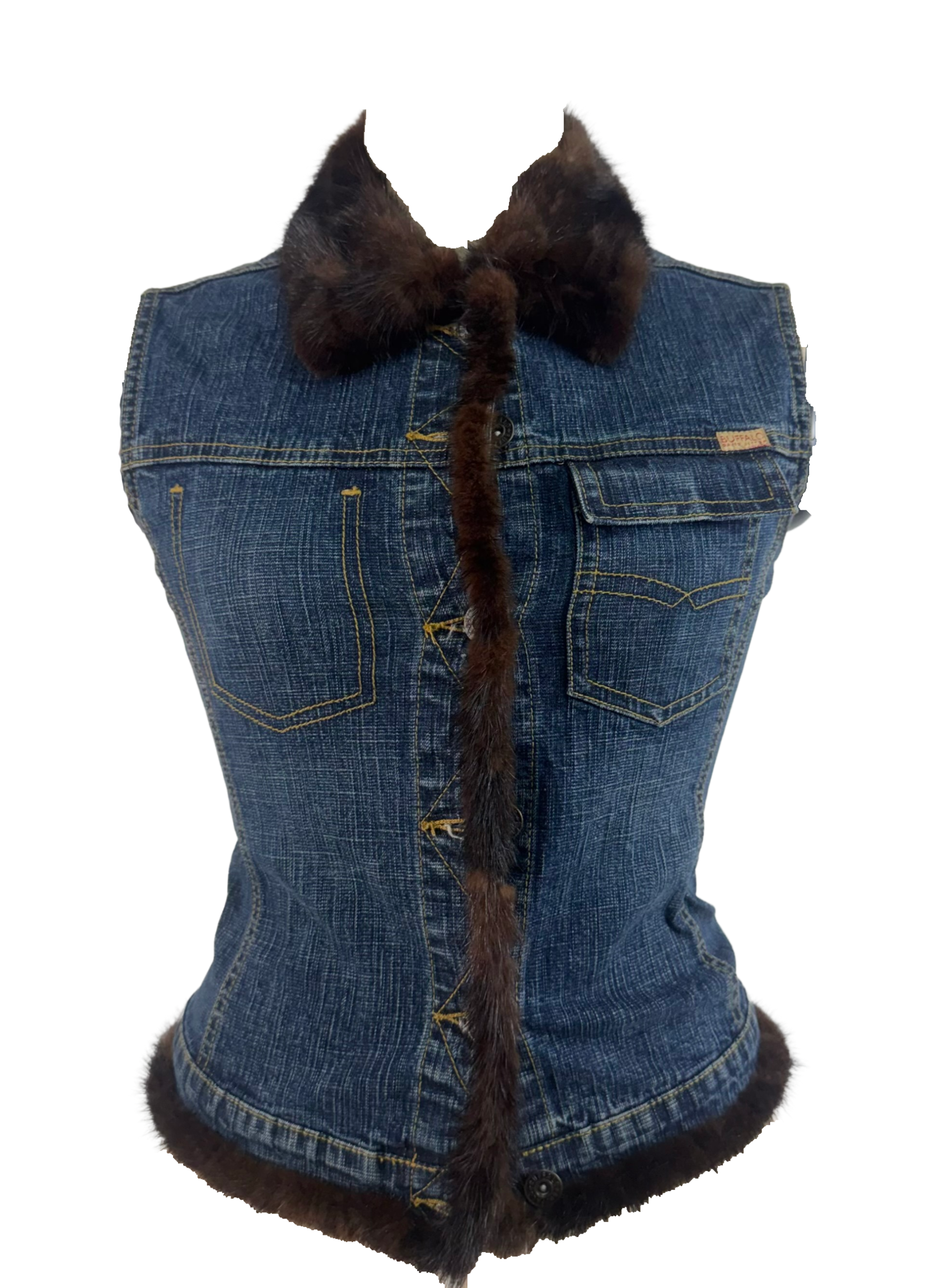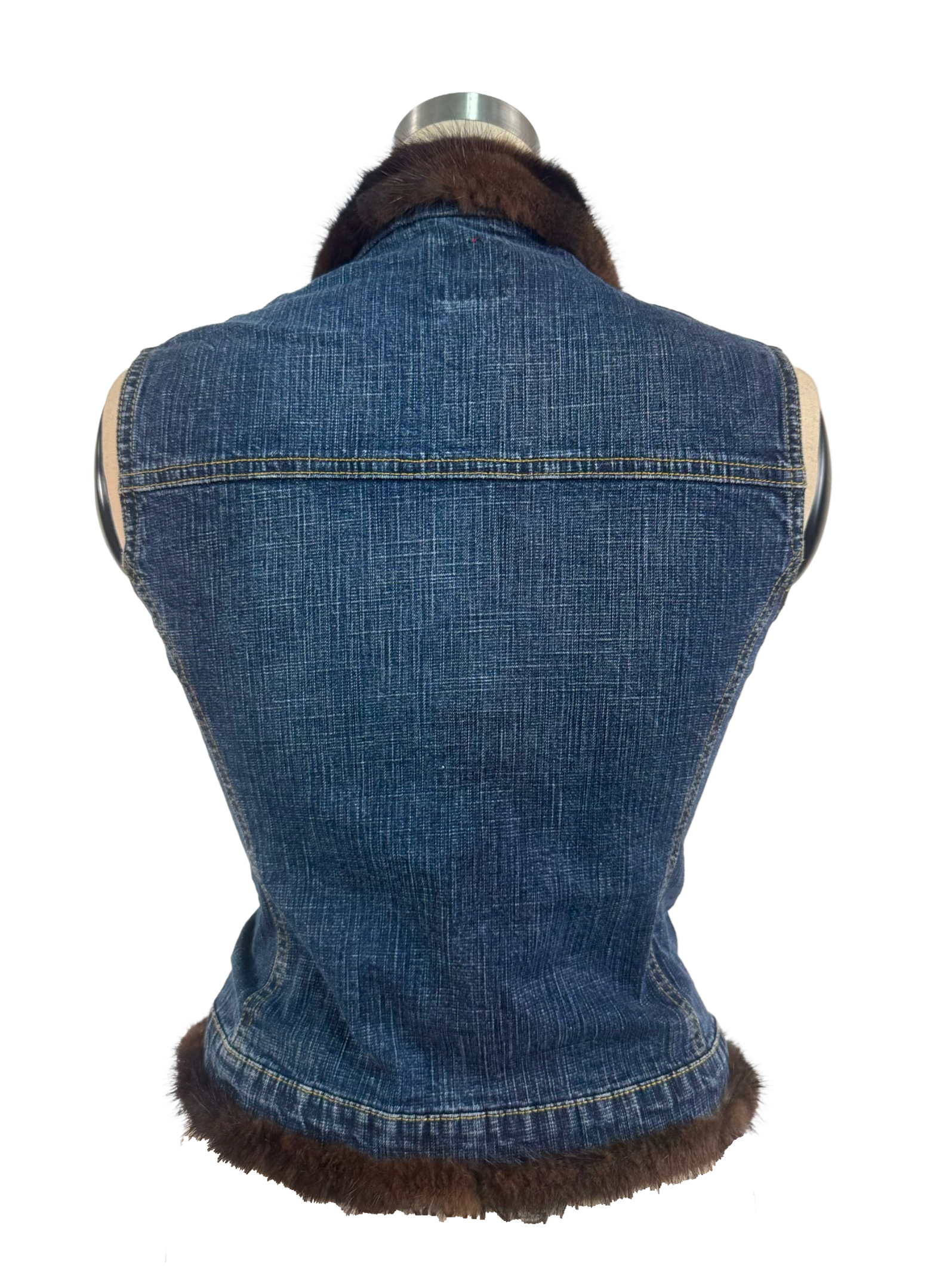Dark-wash denim + plush faux fur trimmings = ICONIC