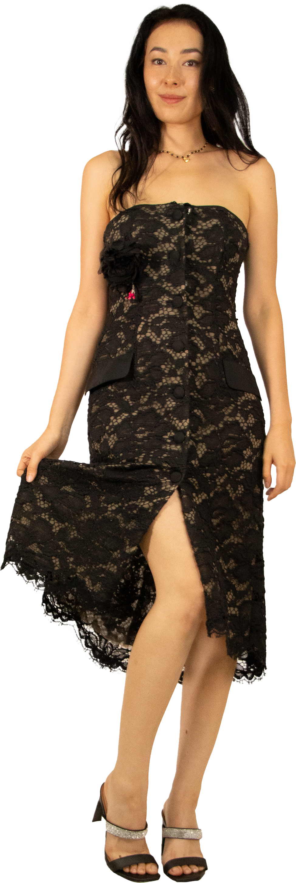 Custom made by a tailor, this lace dress has a built in corset to cinch you in during long courses. Mega cute for wedding cocktails, too!