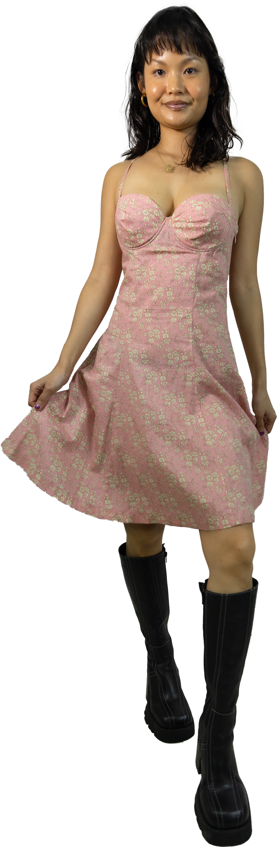 This Y2K era bustier dress is not like its bodycon sisters. Loose enough to hide your food baby, this bustier dress can be layered over a t-shirt a la Chloe Sevigny herself in the lookbook.