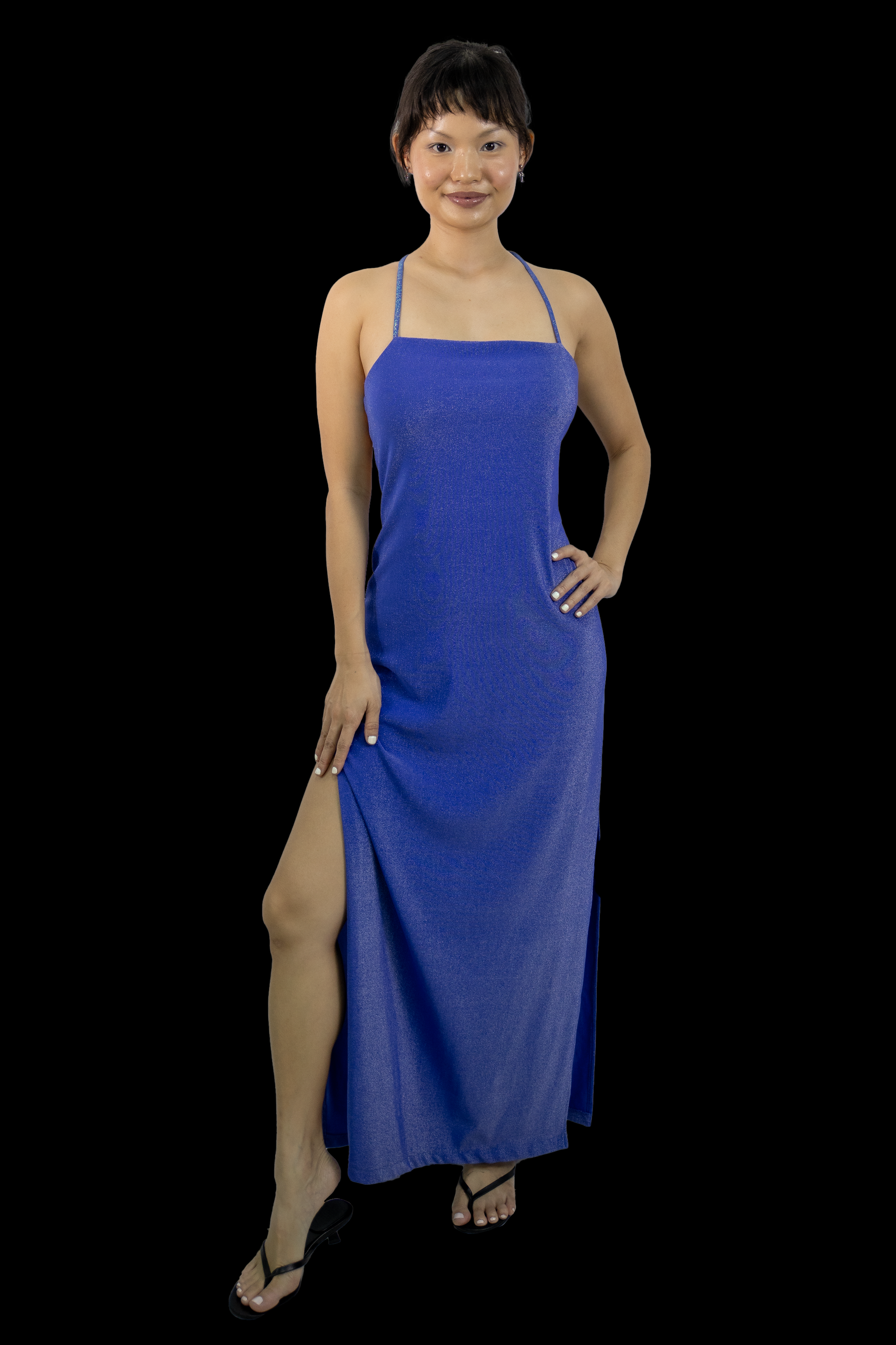 This shimmery blue caged dress features a side slit and a square neckline for an ultra flattering look that’s sexy AND classy. Made in the late ‘90s to early ‘00s, this dress would have been seen in one of your favorite TV shows and/or rom coms growing up.
