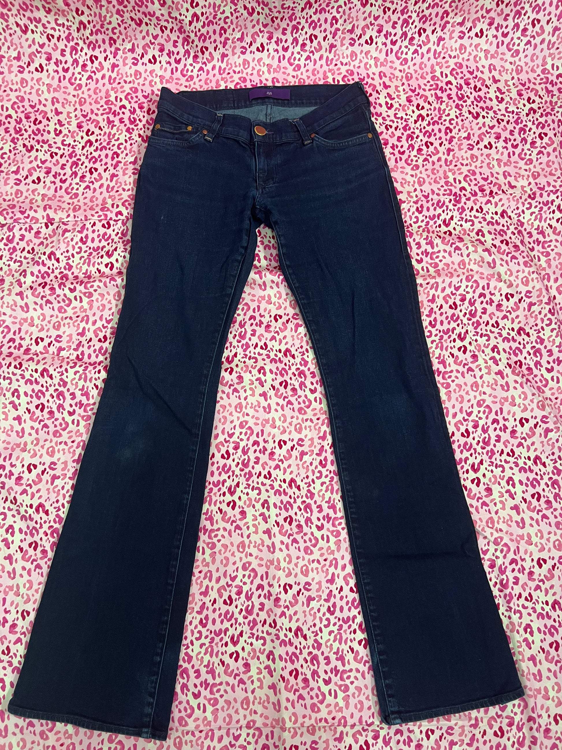 Sitting snugly at your hips, these booty hugging jeans are peak Y2K low rise. Featuring a super skinny leg, copper star embroidery at the pockets, long inseam and a mega hardcore flare at the bottom, these jeans have a tailored look that will elevate any top!