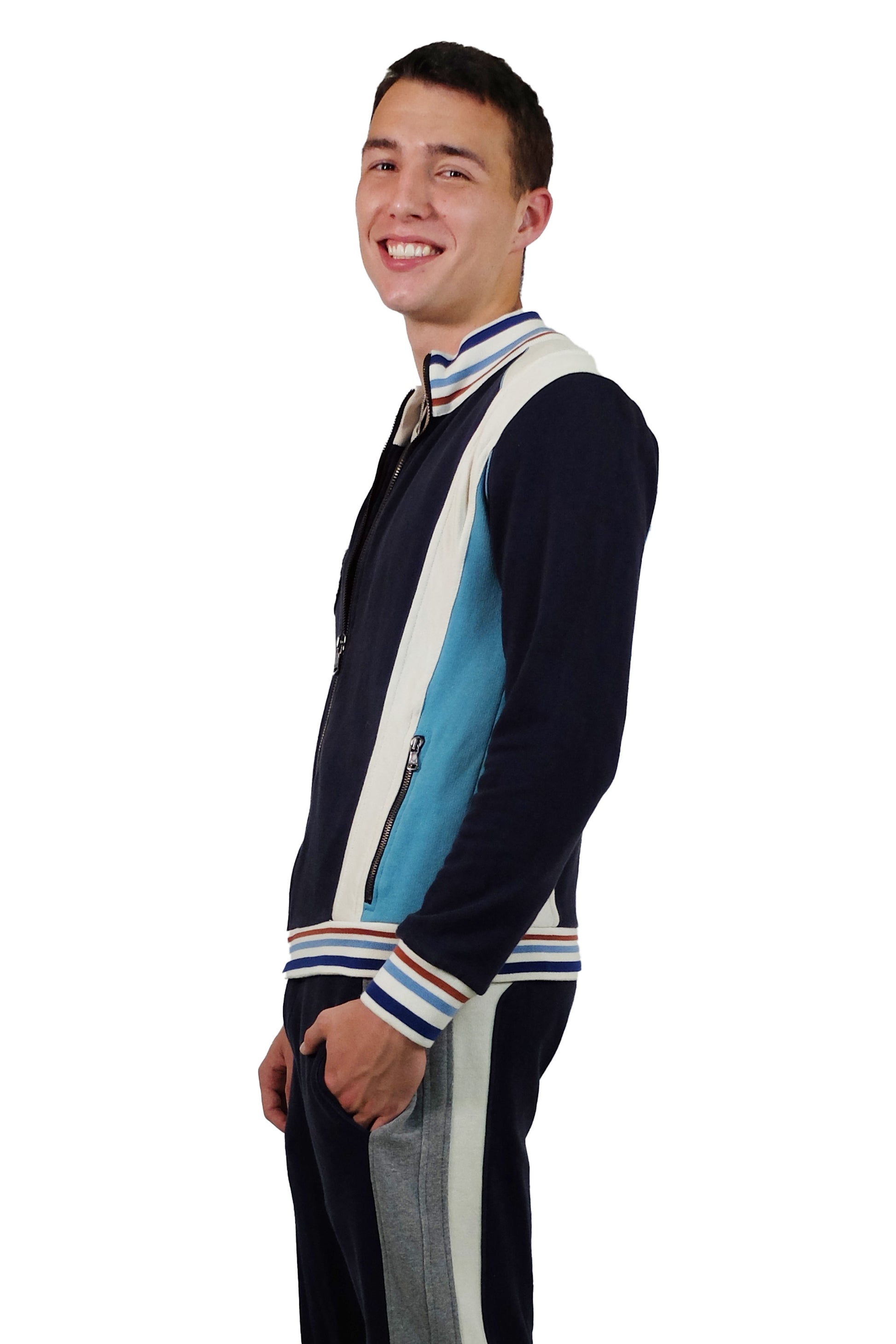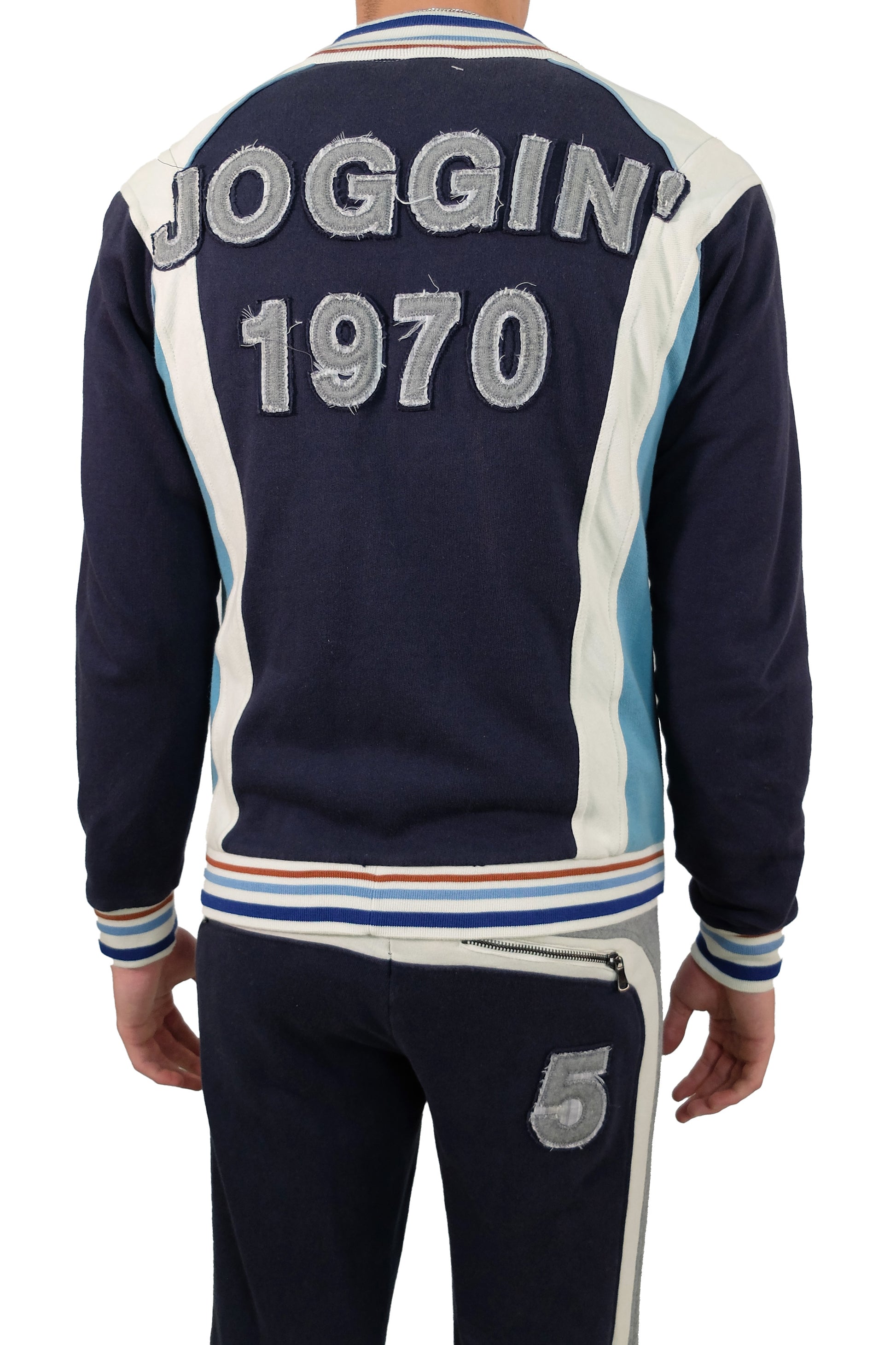 It features JOGGIN' 1970 at the back of the jacket and the pants have a 5 embroidered at the back.