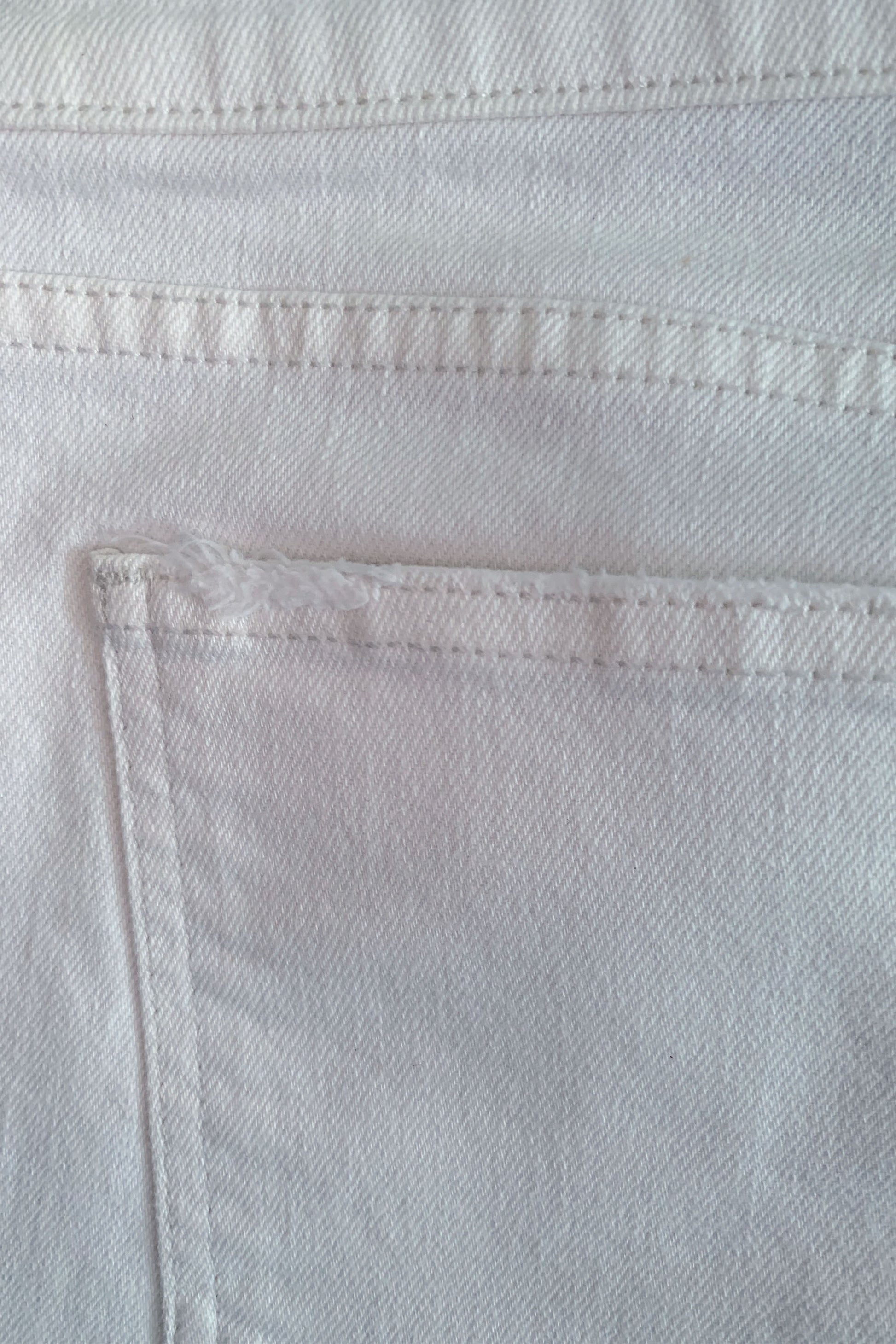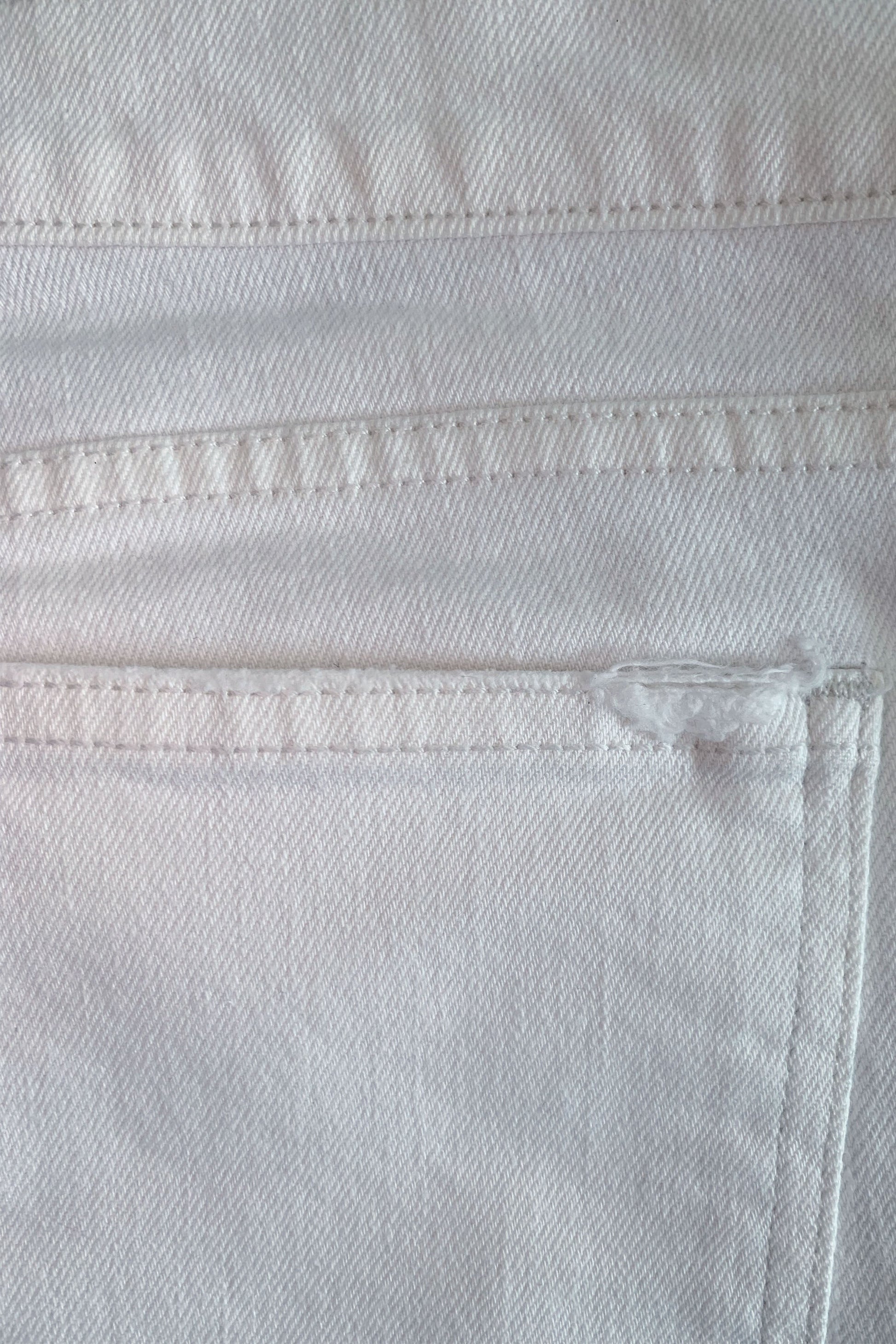 Classic white low rise jeans are back in style! Pair these bootcuts with a cardigan and platform shoes for the ultimate 2000s look.
