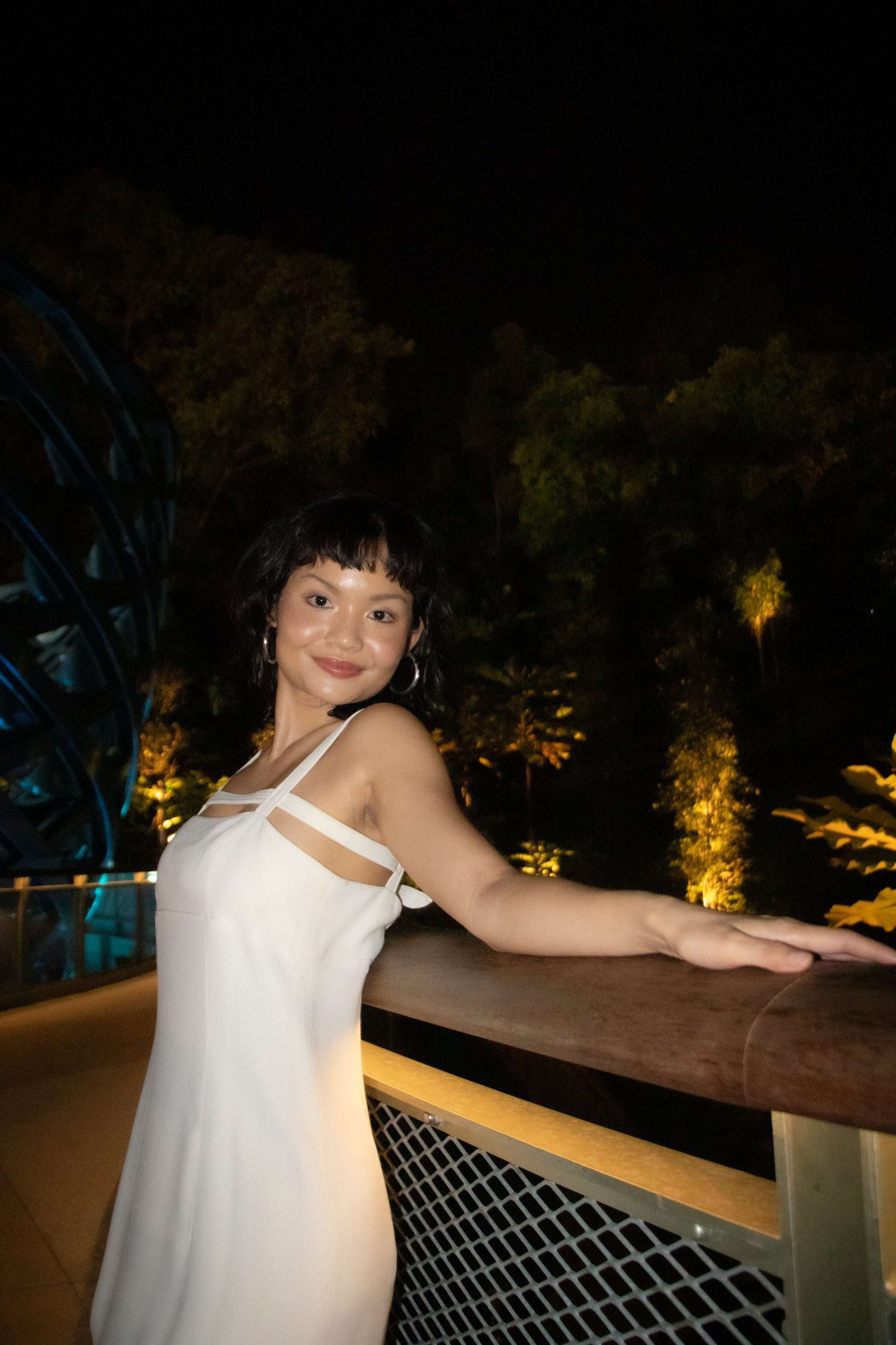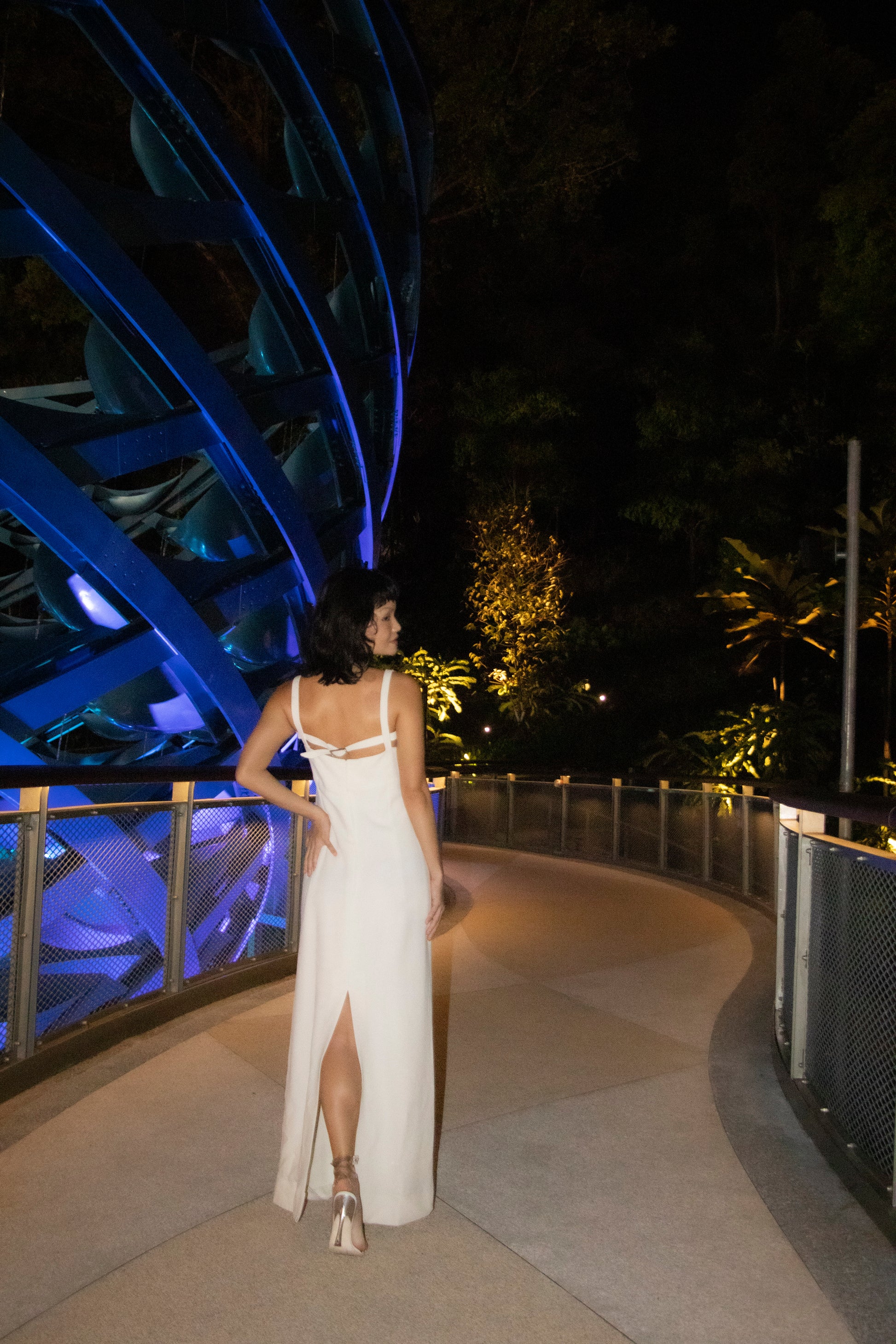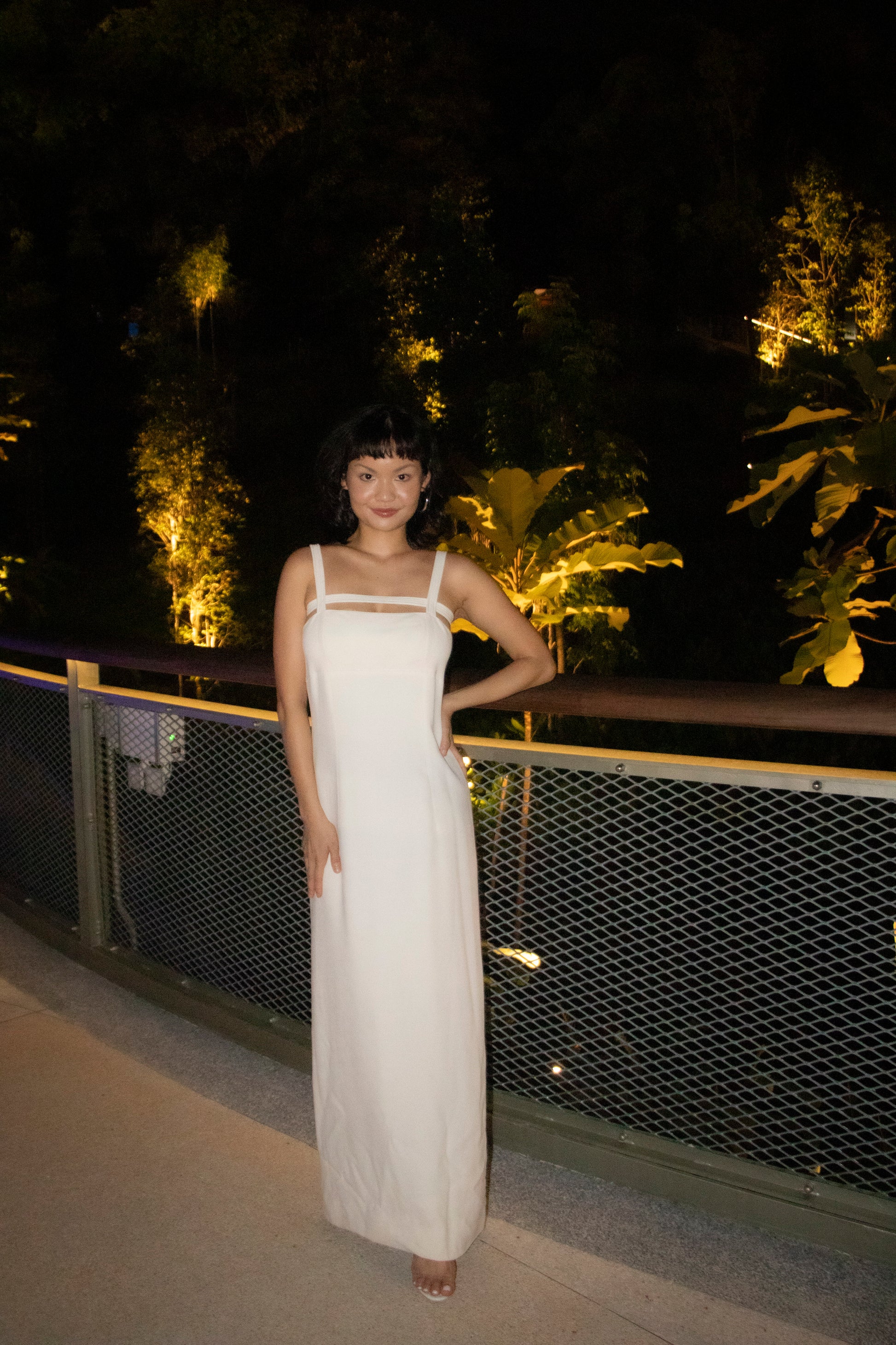 A little white dress is vamped up with multiple harness-like straps that show off the wearer's body. A diffusion line from the main Emanuel Ungaro line, the late couturier's line is playful, yet sophisticated.