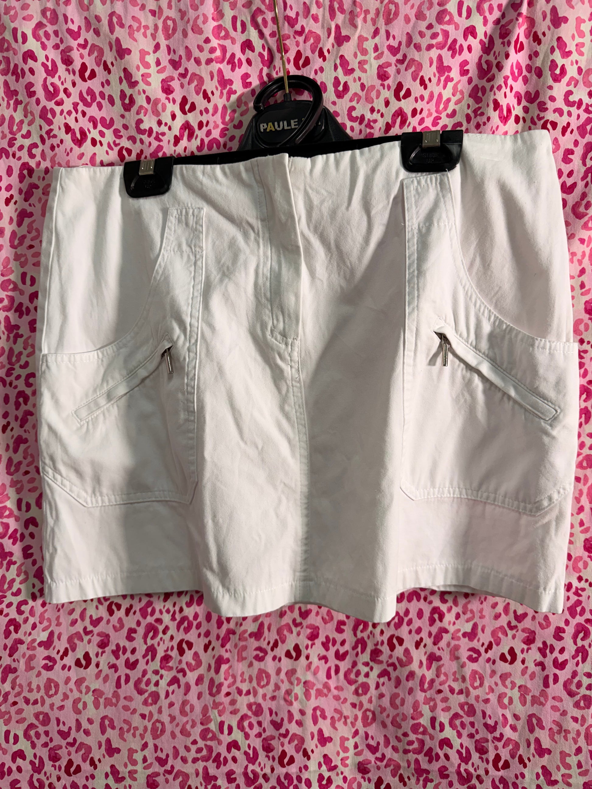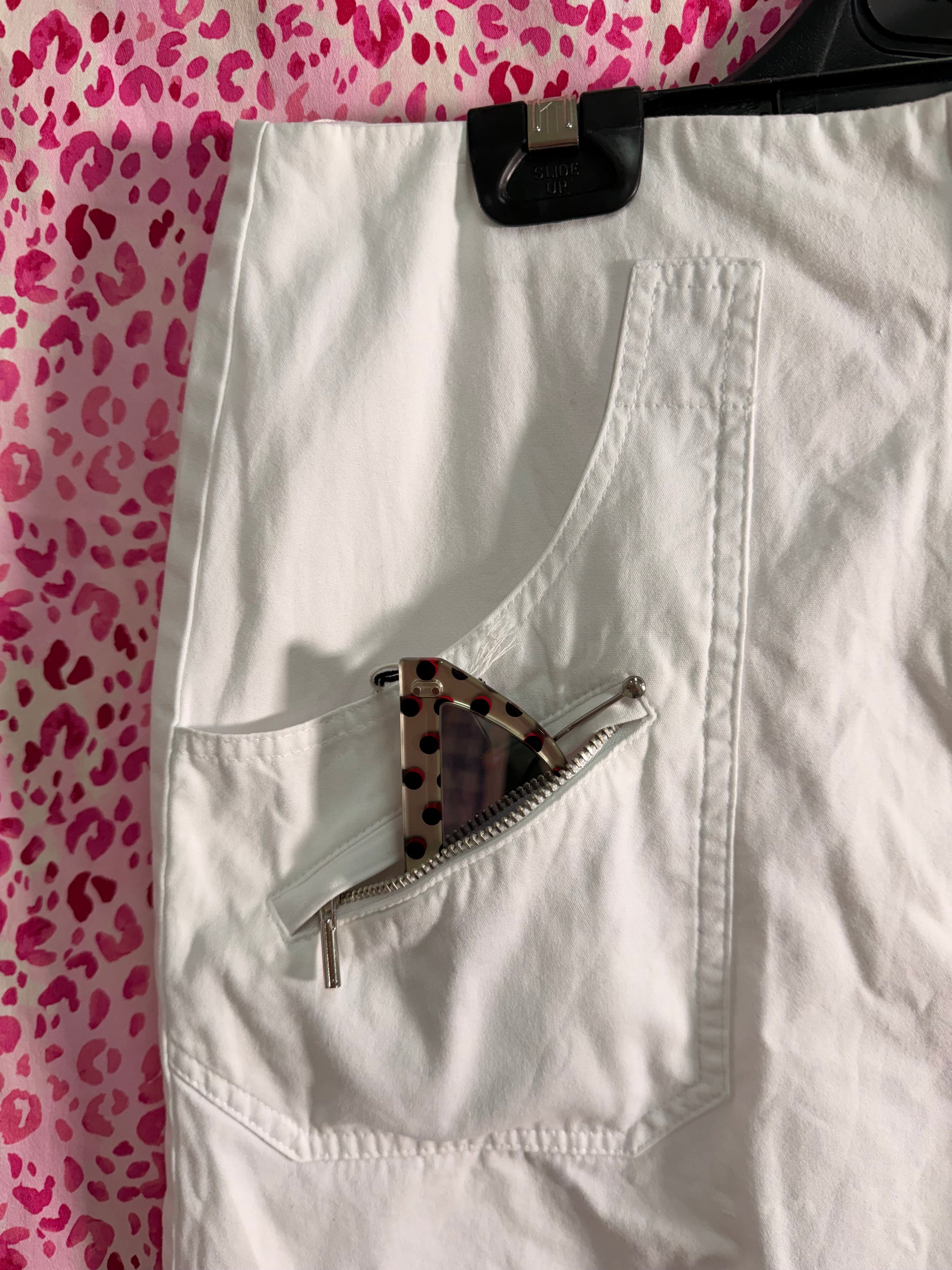 Tenniscore called and this white miniskirt is a classic to slay on and off the court. Featuring deep cargo-style pockets with zips, you can put in many things in there in case you want to go bag-free! Style it with our Cue camisole corset for a playful look!