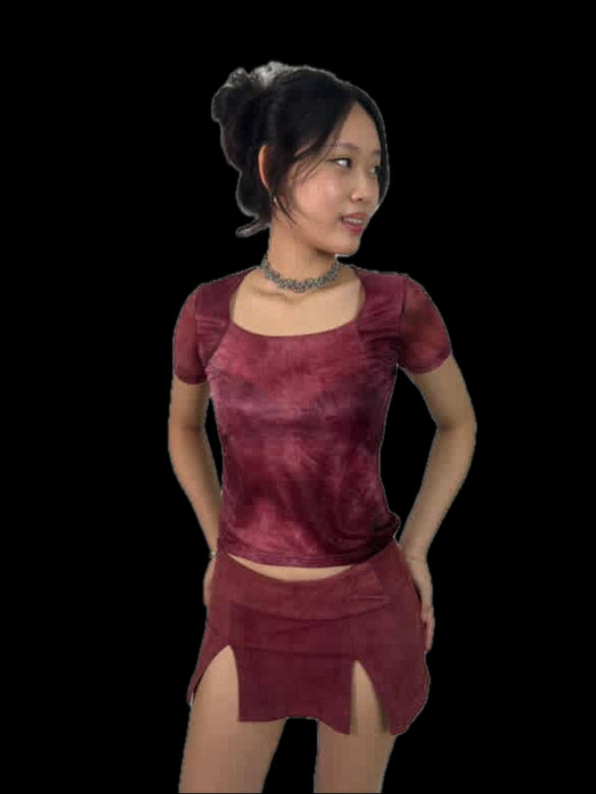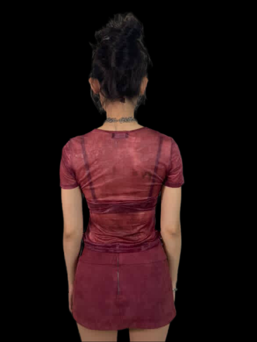 This late ‘90s to early Y2K tie dye mesh tee is so unreal with its raglan-inspired square neck silhouette. Trust us, this is THE perfect crop tee!