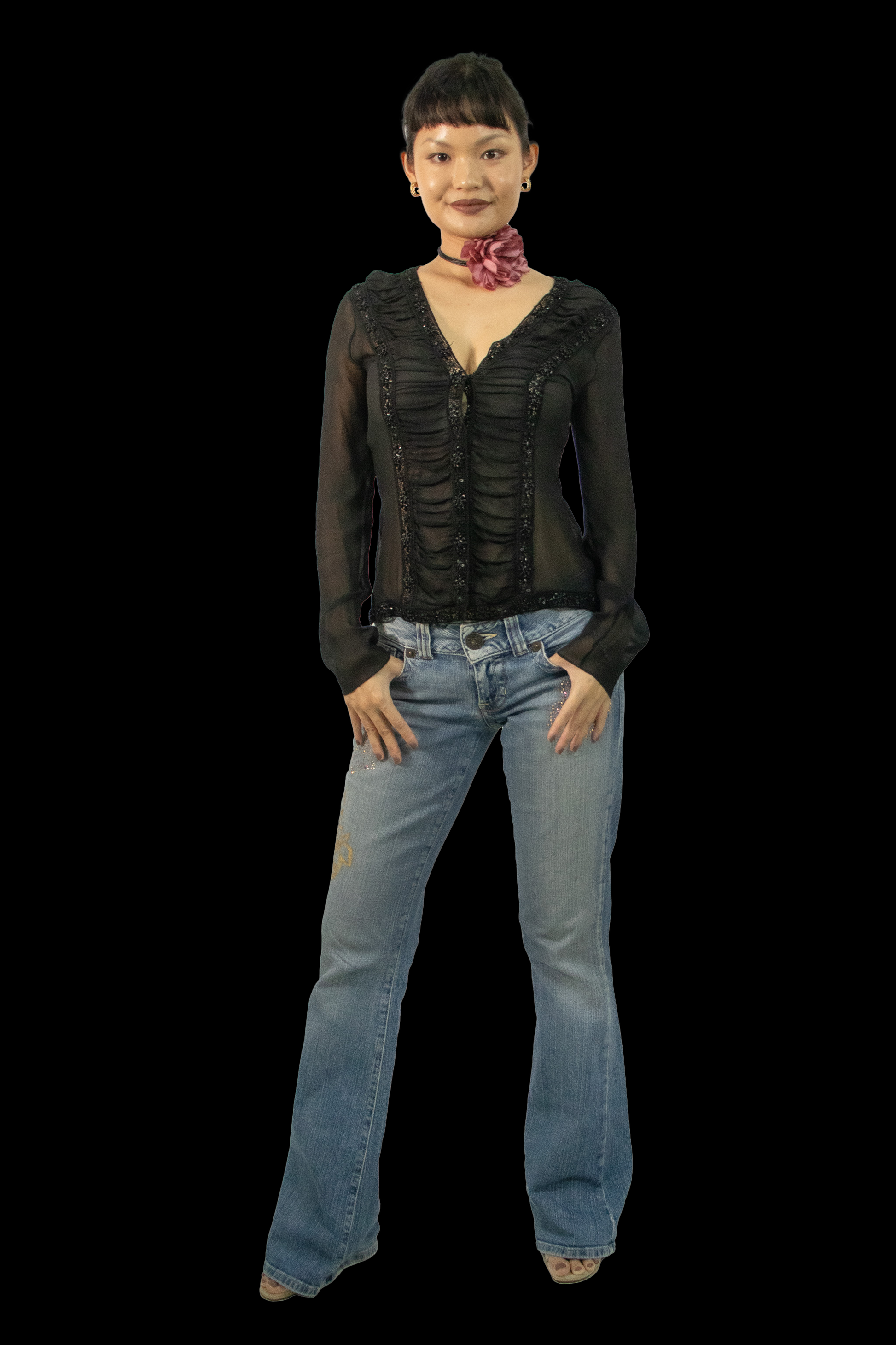 These low rise Guess jeans are so peak Y2K with its rhinestone butterflies and hand painted details. You can’t sleep on them.