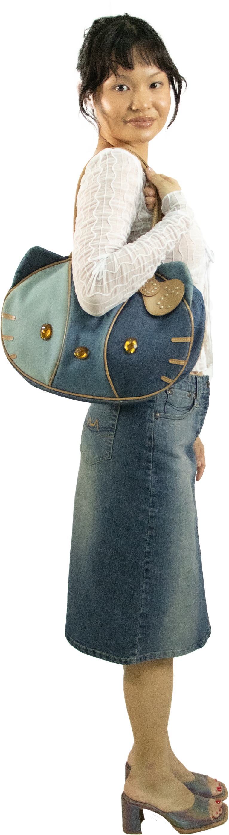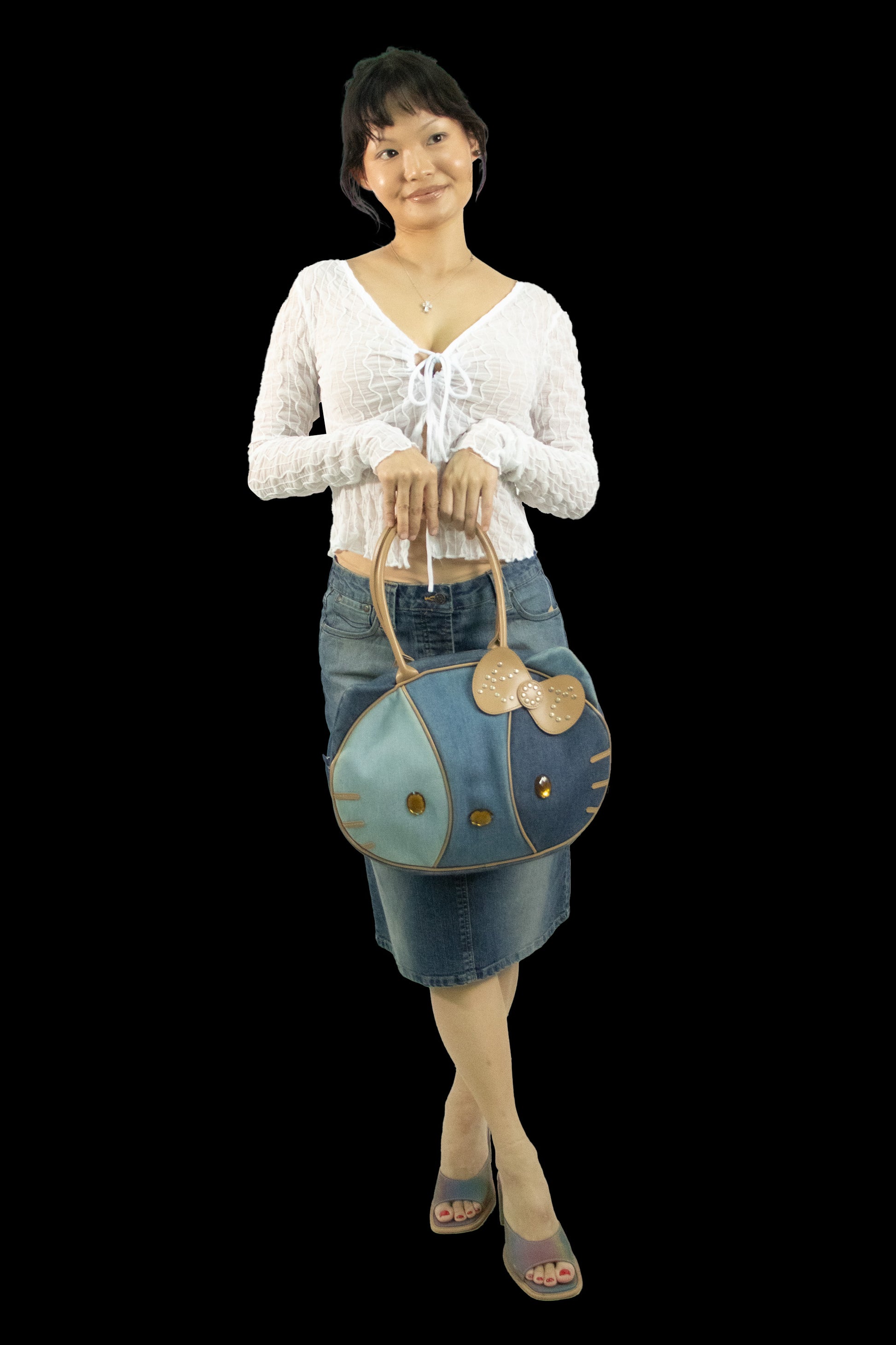 Cult Y2K era fashion brand Heatherette became iconic for their campy and glamorous aesthetics. It's no secret that they collaborated with the icon herself Hello Kitty to design THE cutest denim bags!