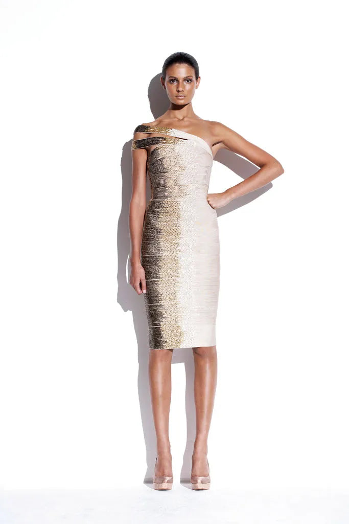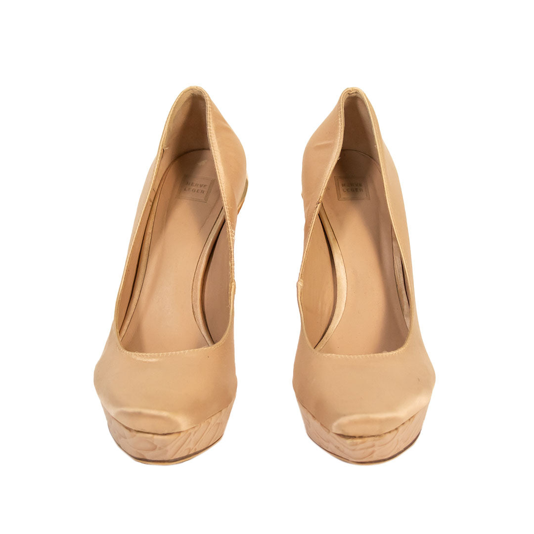 Straight out of the Resort 2010 season, these Herve Leger pumps are phenomenal. Featuring a mock croc platform and blush nude satin, these shoes make you look taller.