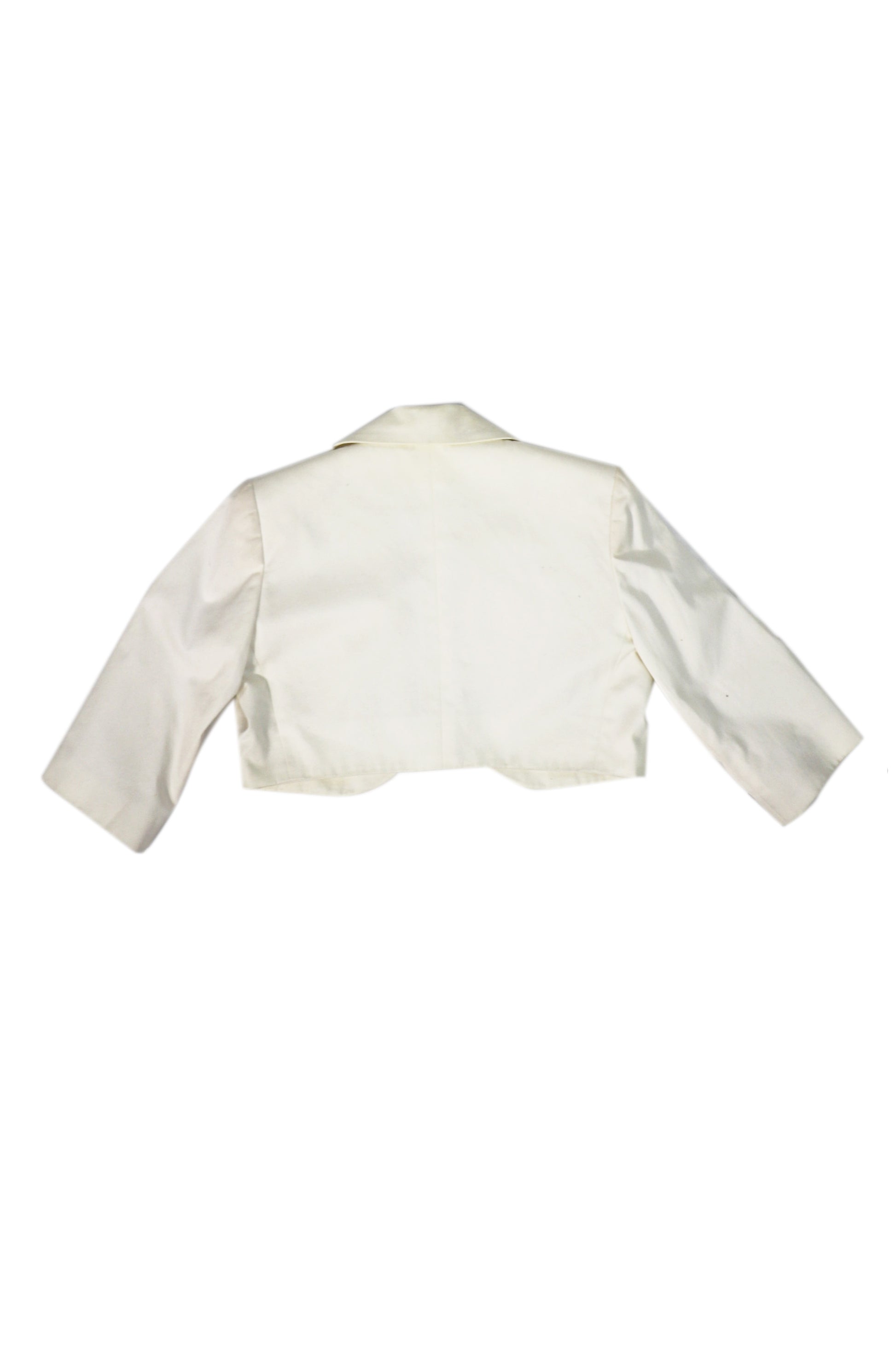 This cropped jacket is IT. Designed in the late ‘90s, this jacket is meant to be thrown on top of a dress or top for formal gatherings, but it can also be dressed down, too.