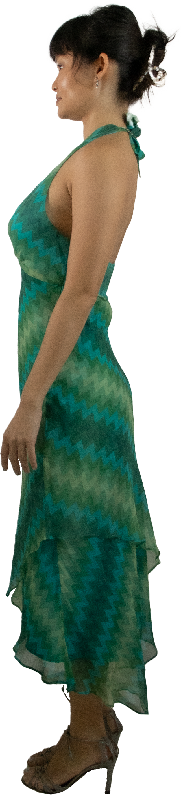 Nothing gets more Y2K than a zigzag patterned halter dress. Crafted from silk, this gorgeous green hue reminds us than our ultimate Y2K queen Jennifer Lopez!
