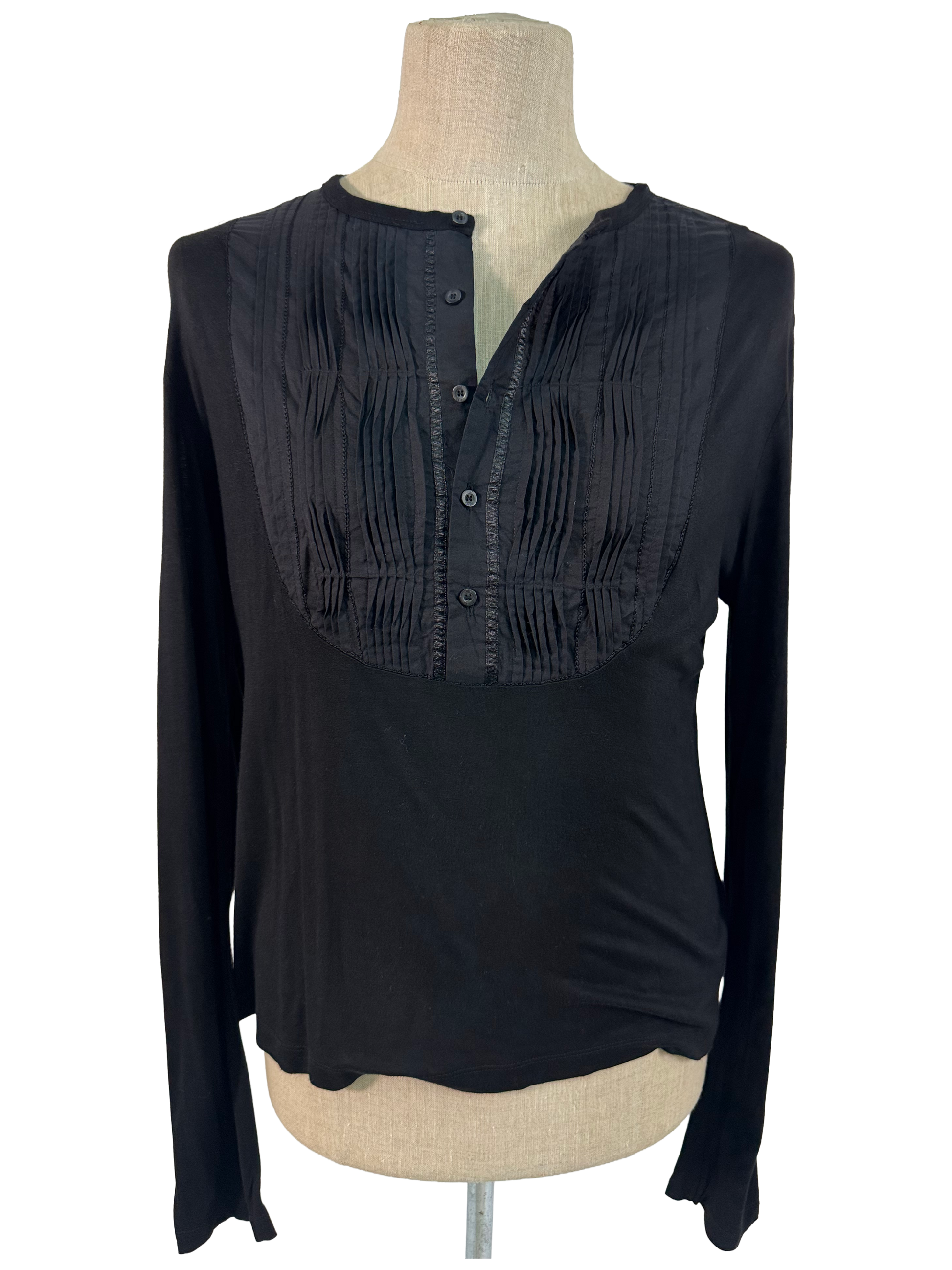 This black Just Cavalli shirt brings a sleek edge to understated dressing. Featuring a pleated tuxedo-style bib and button-down front, it’s giving “rockstar at dinner”, but make it Italian luxury. The soft stretch fabric keeps it comfortable while the pleats keep it sharp.
