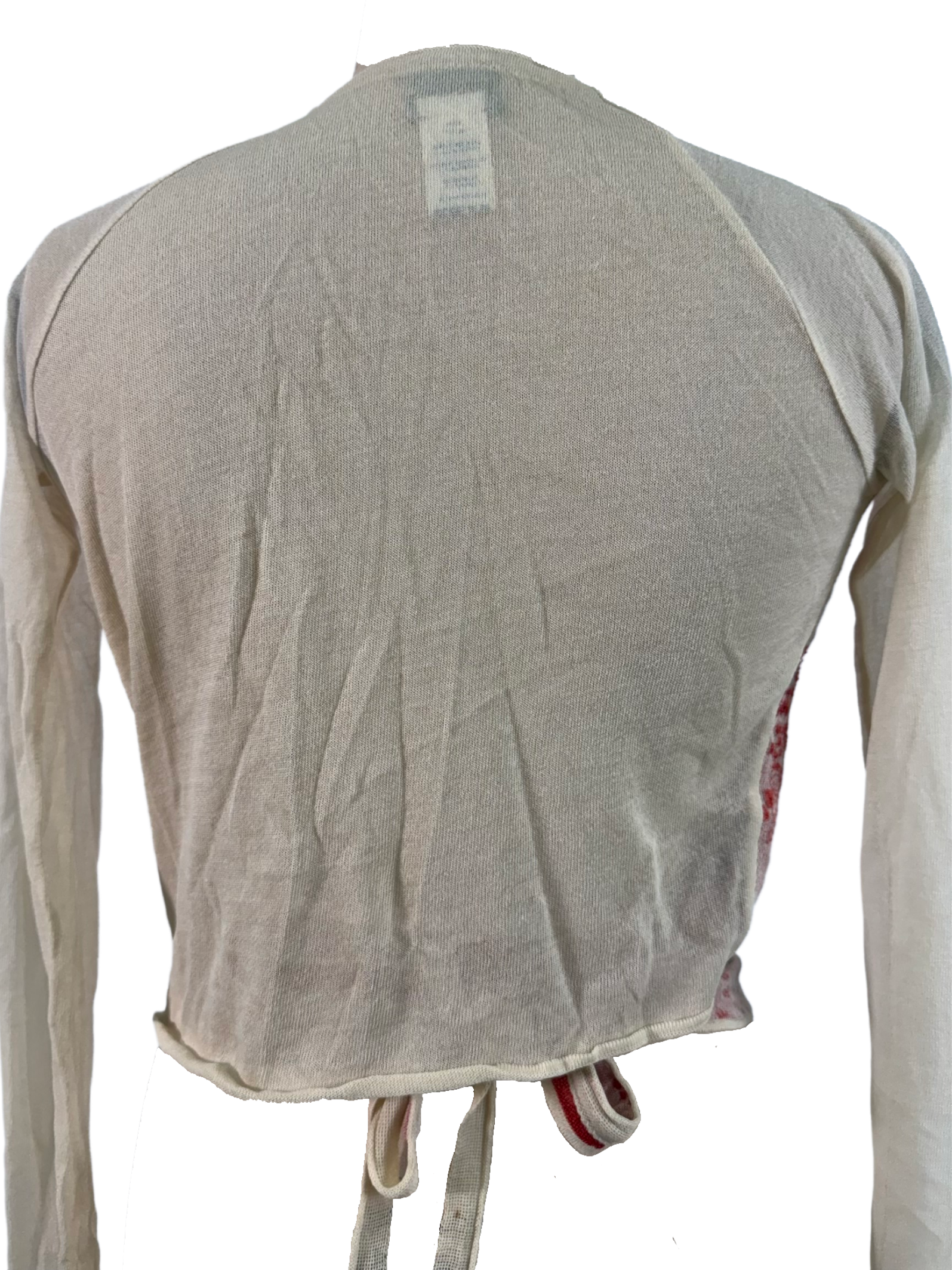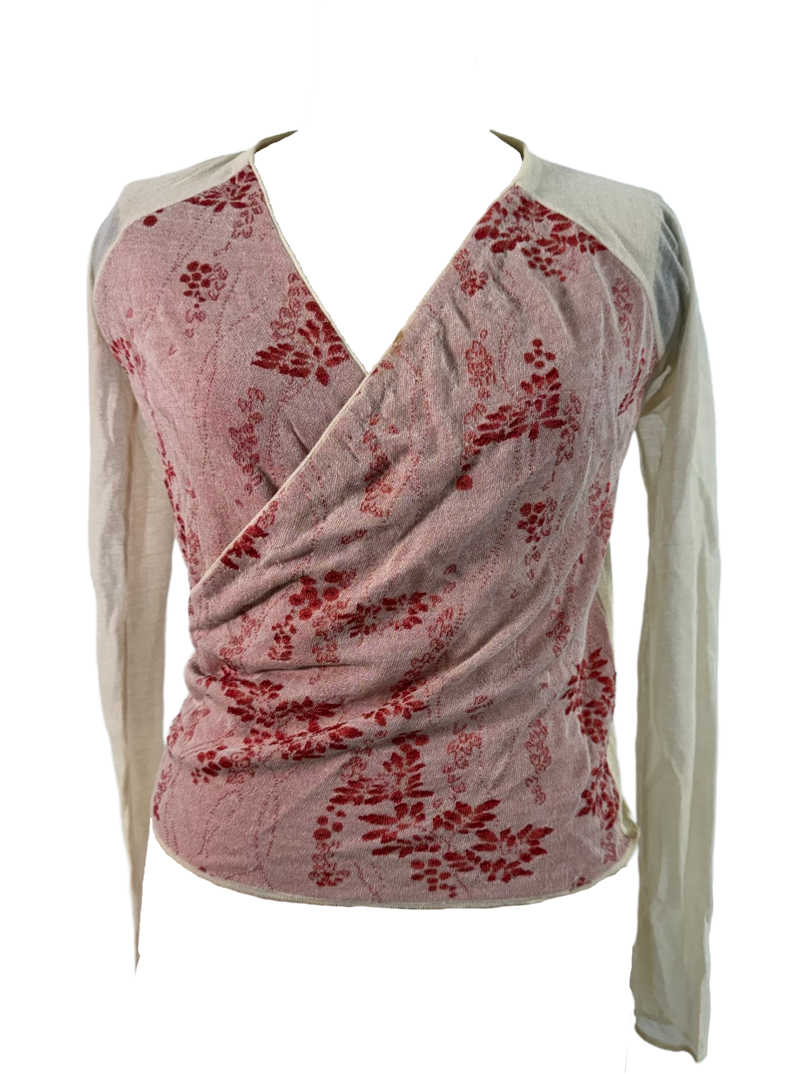 This Kenzo wrap top is a chic and effortless statement piece. The soft cream base with delicate red floral prints gives off major feminine energy, while the kimono-inspired wrap design brings a touch of Eastern elegance to your everyday look.