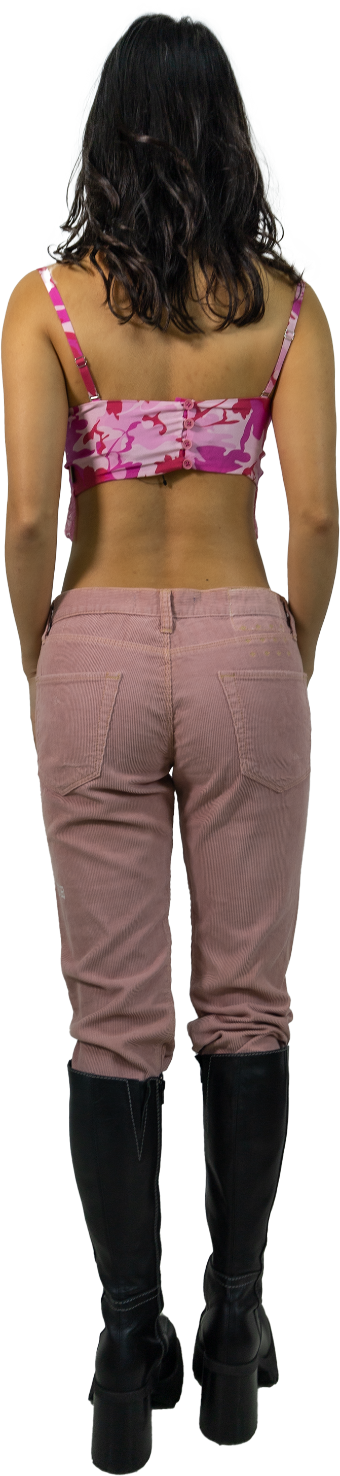 These low rise pink corduroy pants were made in the mid '00s before the brand changed their name. Made with the softest cotton, you literally want to sleep in them! They have a hand distressed finish on the hemline.