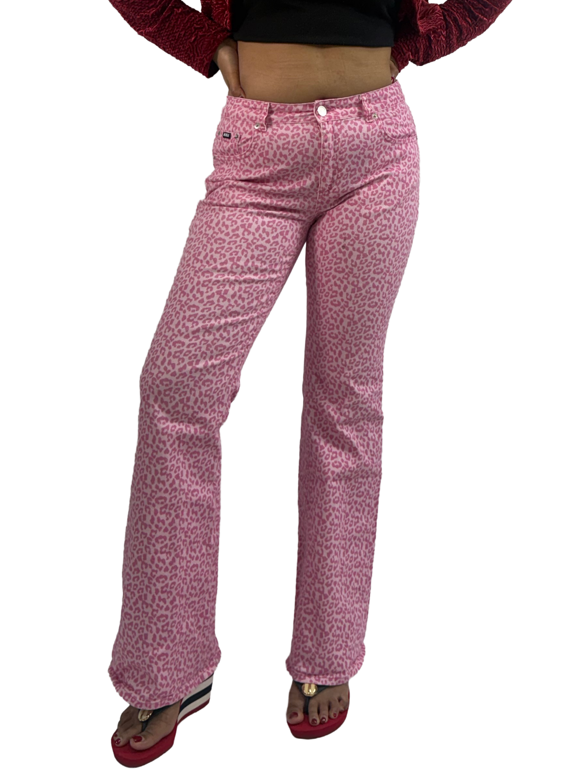These leopard jeans are so Cavalli coded with its bootcut silhouette, high rise and booty hugging cut! Style them with our sequin tube top.