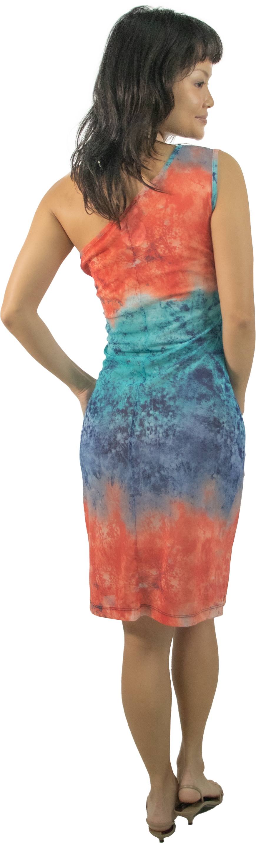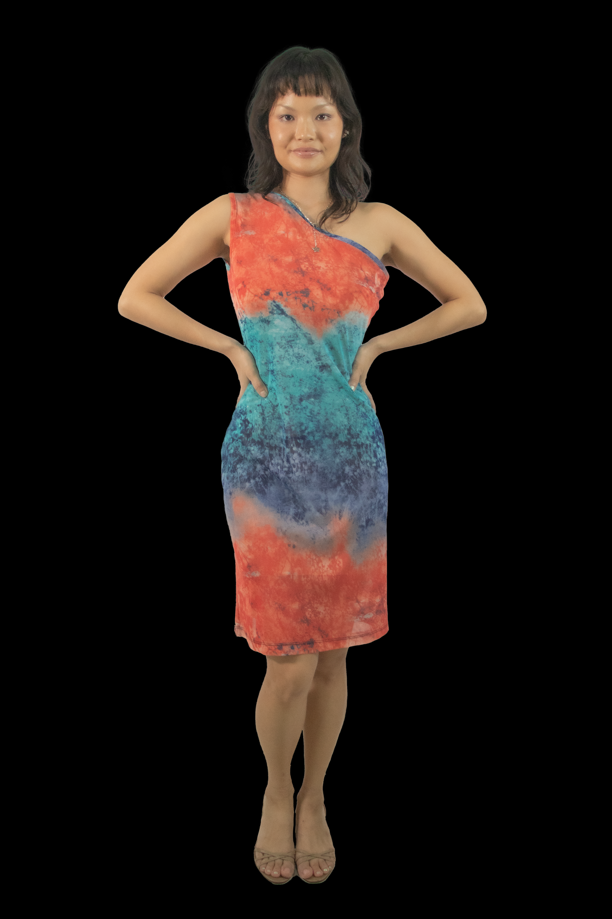 Vary Trend One Shoulder Rainbow Mesh Dress