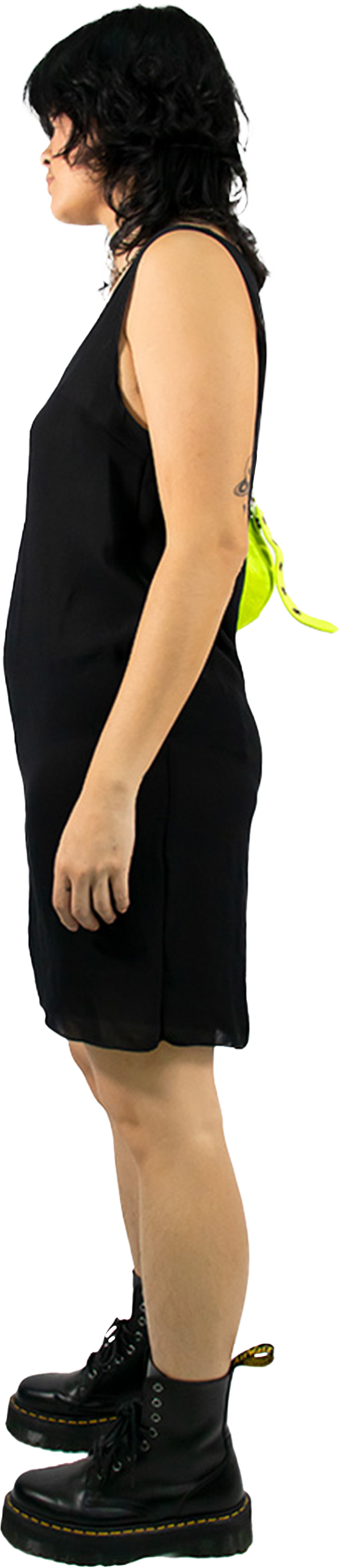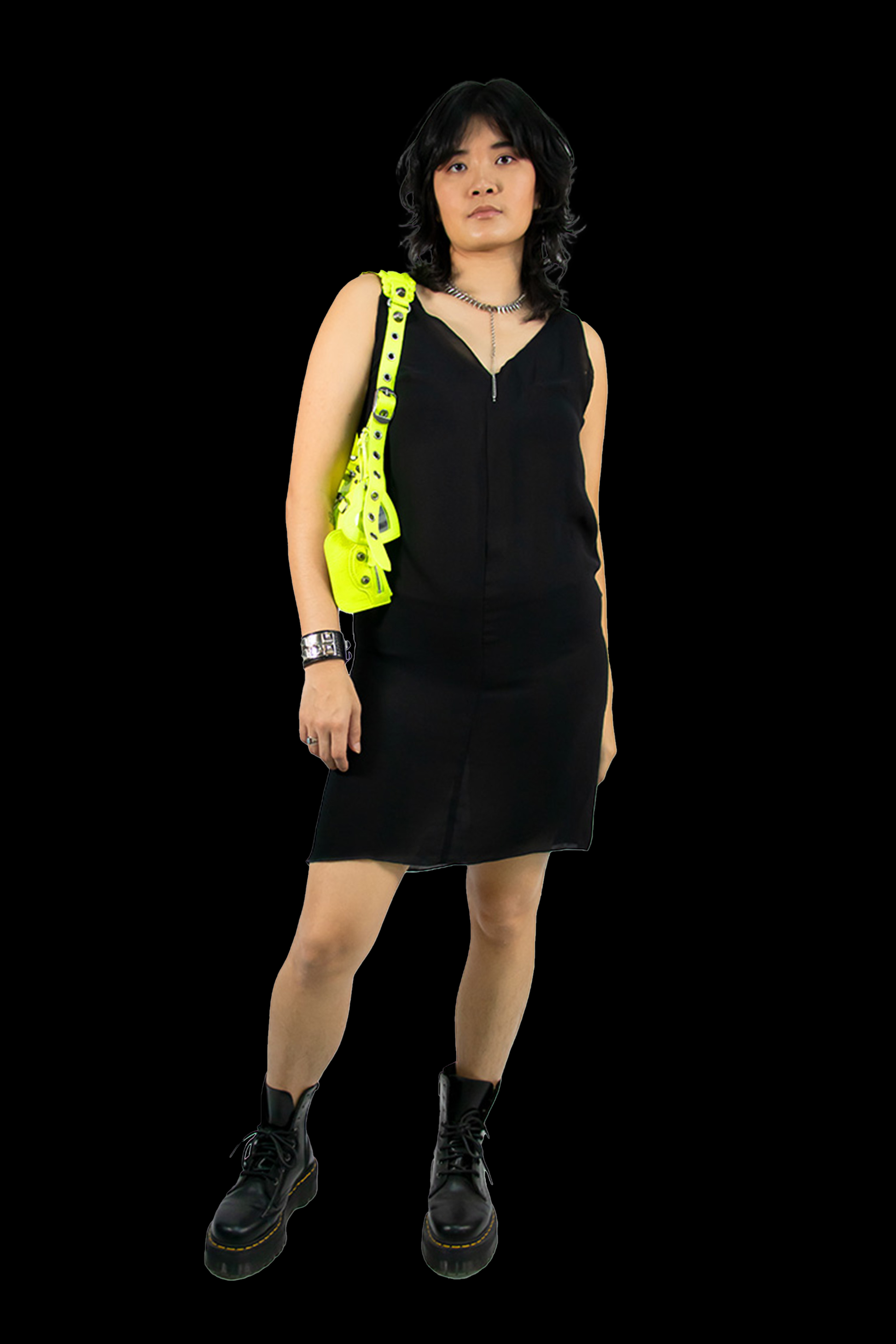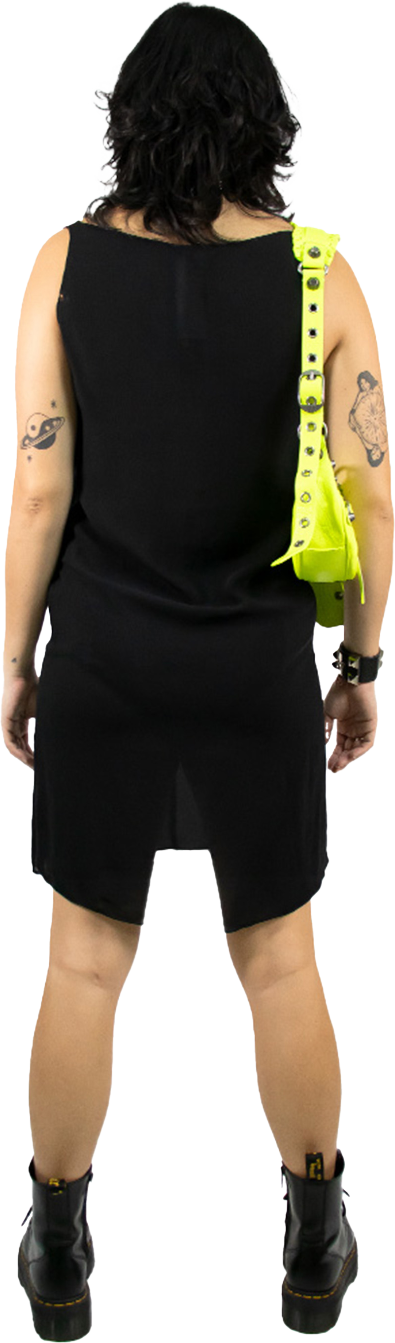 The simple black slip dress is here to stay. Easy to throw on and take off, Plein Sud’s silky chiffon dress is perfect all season long to be worn on its own on hot days or layered over knits in colder temps.