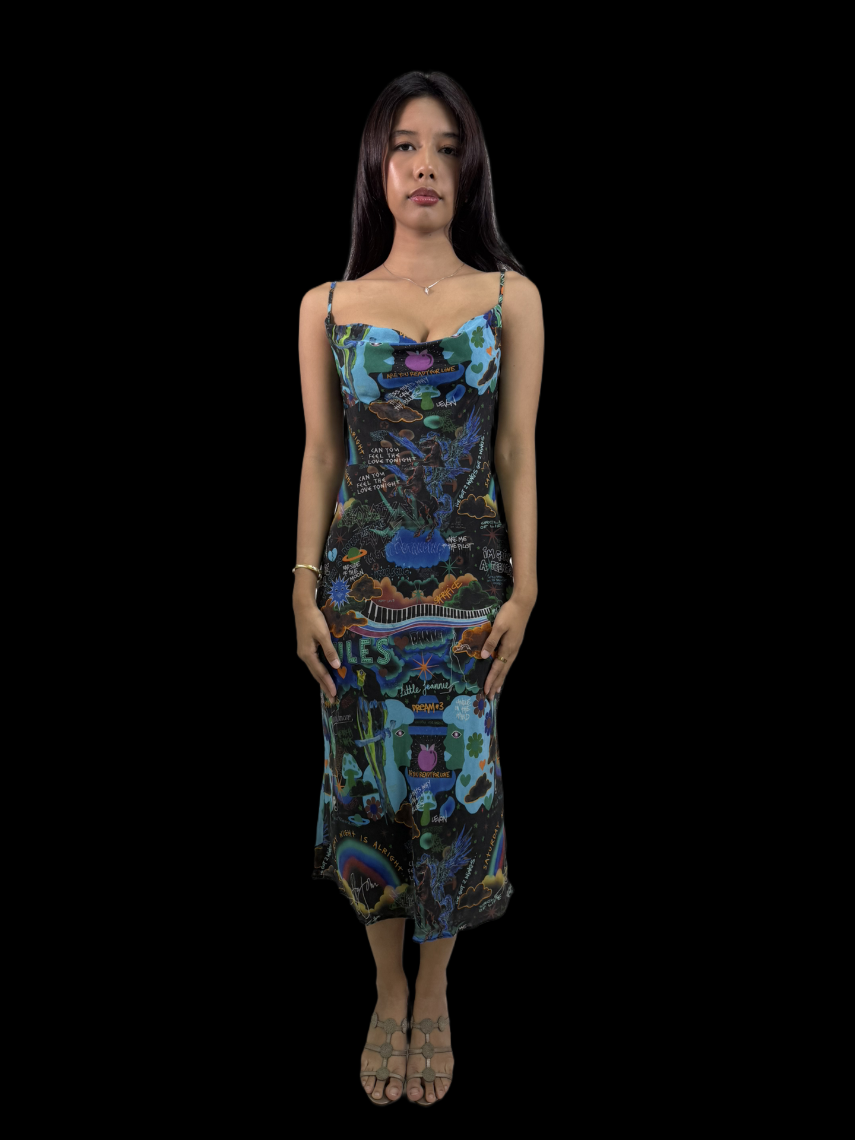 A super rare archive piece from the most sought after Réalisation Par collab, this limited edition dress was designed by Elton John. Featuring a cowl neckline and a knee-grazing hemline, this bias cut dress is meant to make you look taller.
