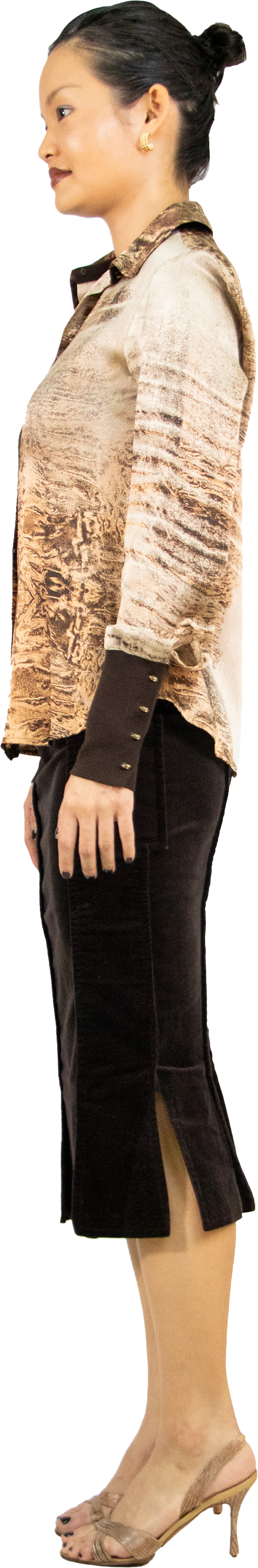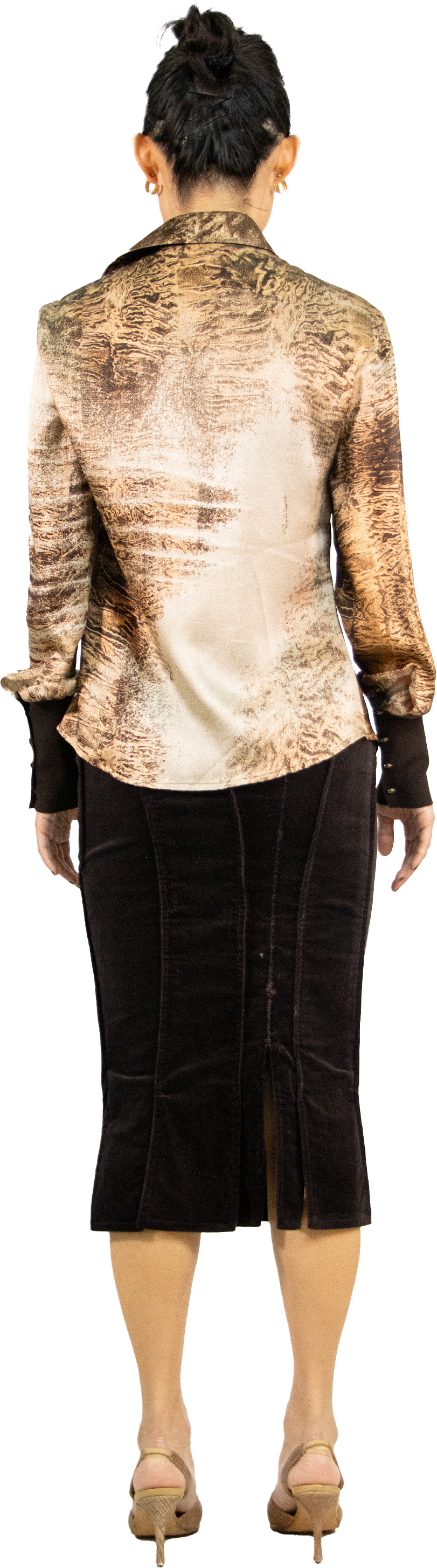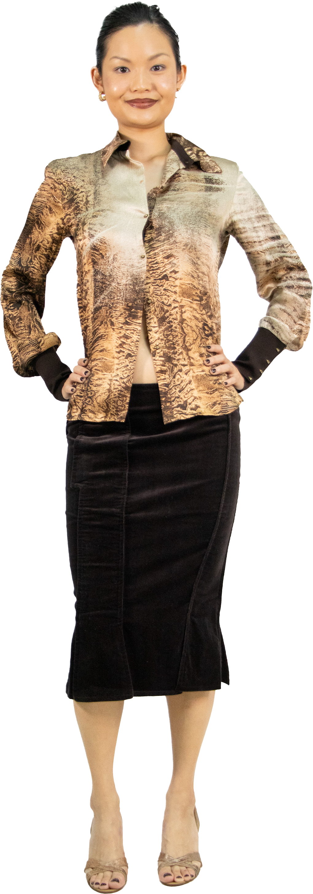 Released in 2001, this silk trompe l'oeil textured top drapes beautifully on the body with snake head buttons.
