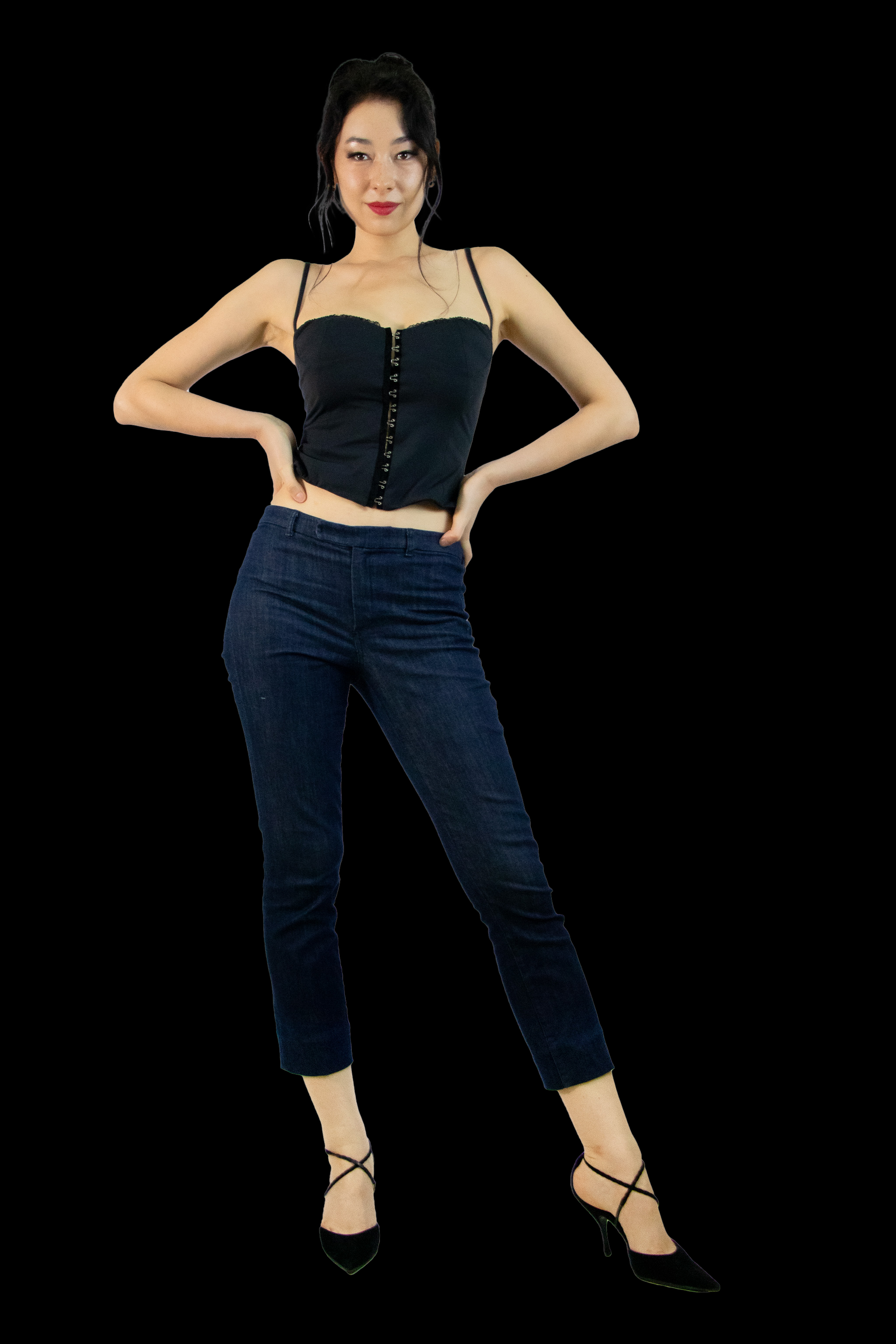 Capris are the It silhouette of the year. These capris are made of Italian denim to sculpt the legs and lengthen them.