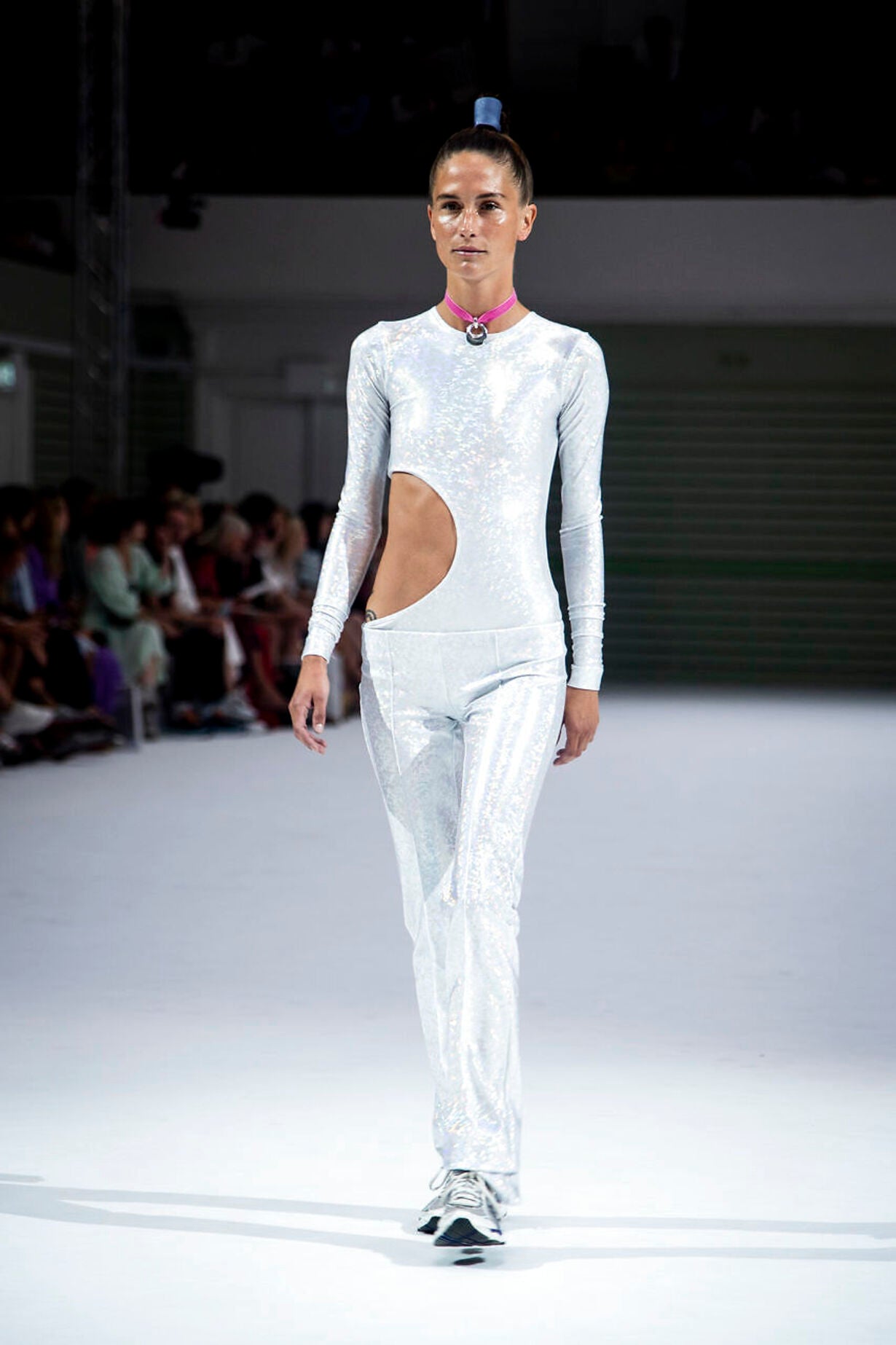 The silver holographic fabric appeared on the S/S 2019 fashion show.