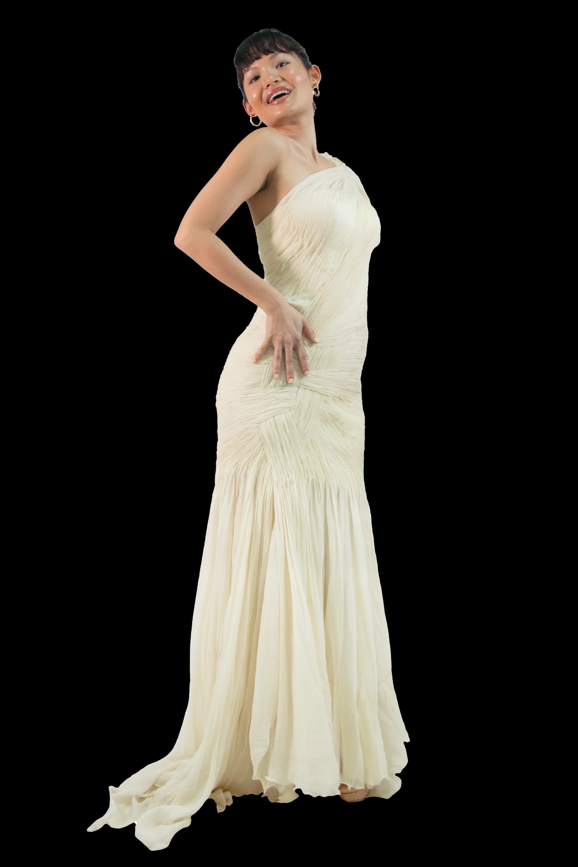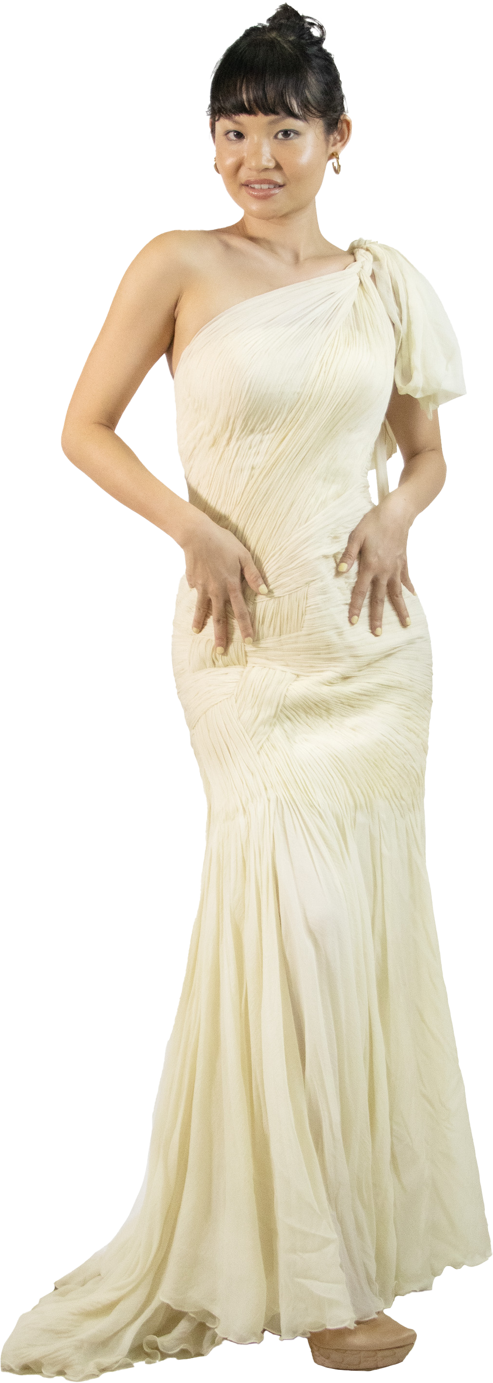 Inspired by Alexander McQueen’s Oyster dress from the SS 2003 collection, this Y2K era romantic white dress features criss cross draping crafted from European silk. Featuring a built-in bra, this custom made dress is ideal to wear for your wedding or party!