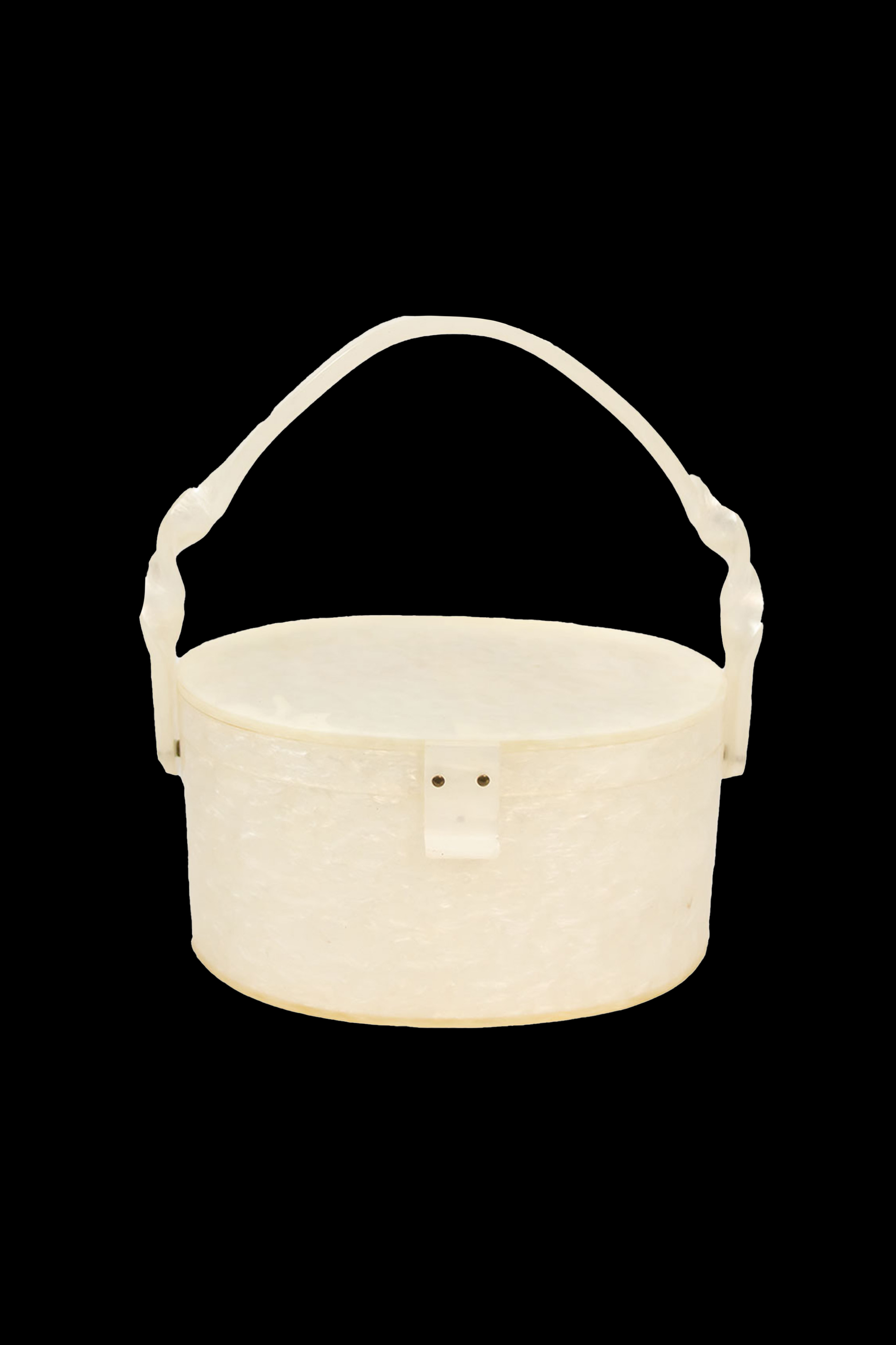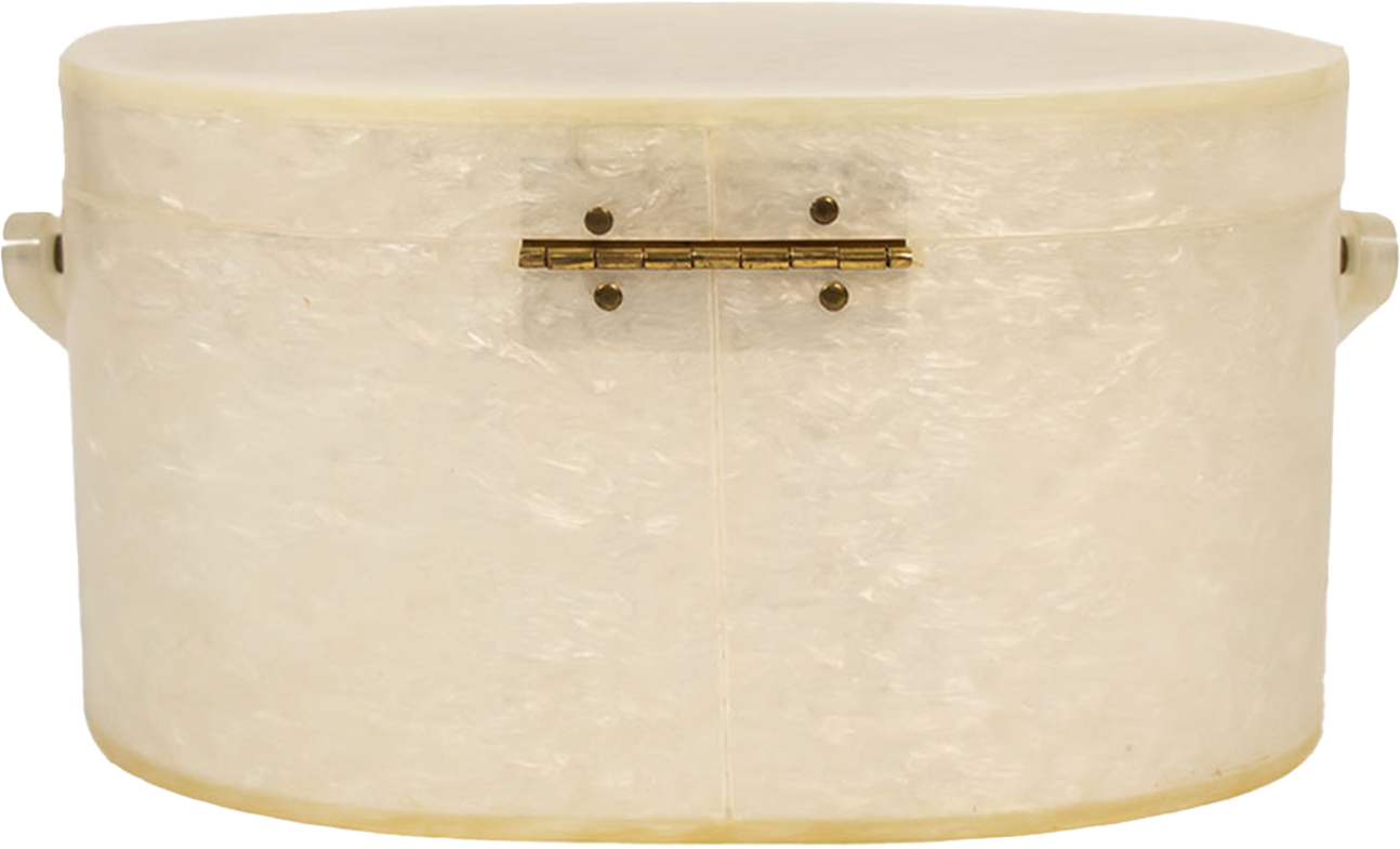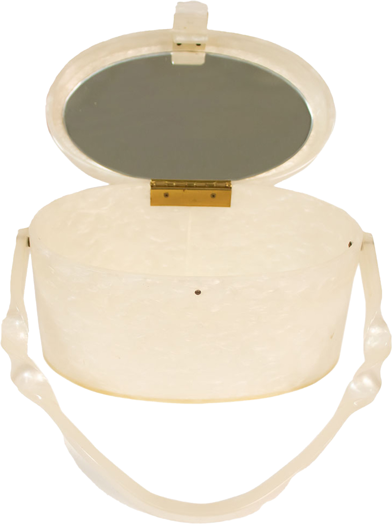 Pearl bags are the new pearl jewelry. Made in the '50s, this lucite bag contains a mirror and it can hold everything: card, wallet, lipstick, phone and keys. For day or night, this pearly lucite bag creates a quiet statement that can turn heads everywhere you go.