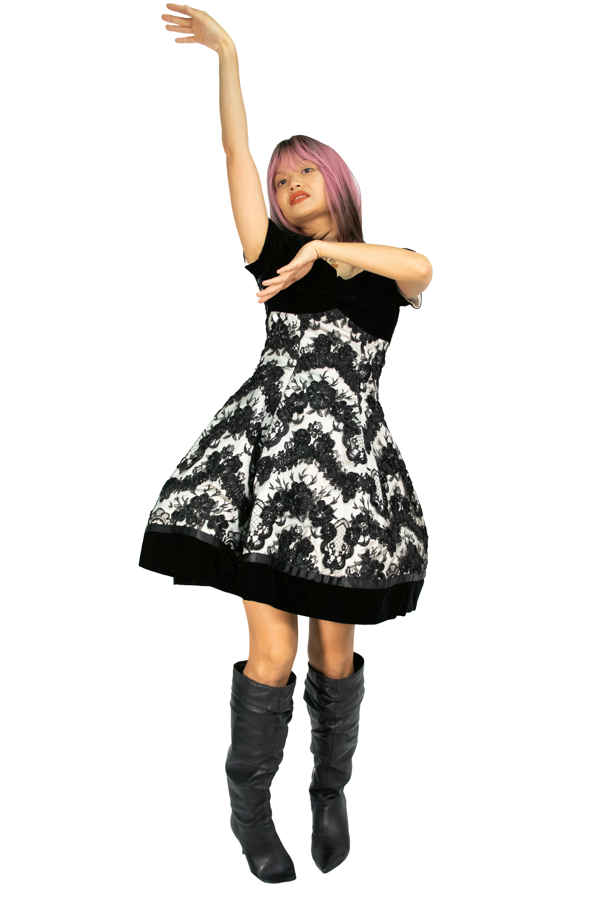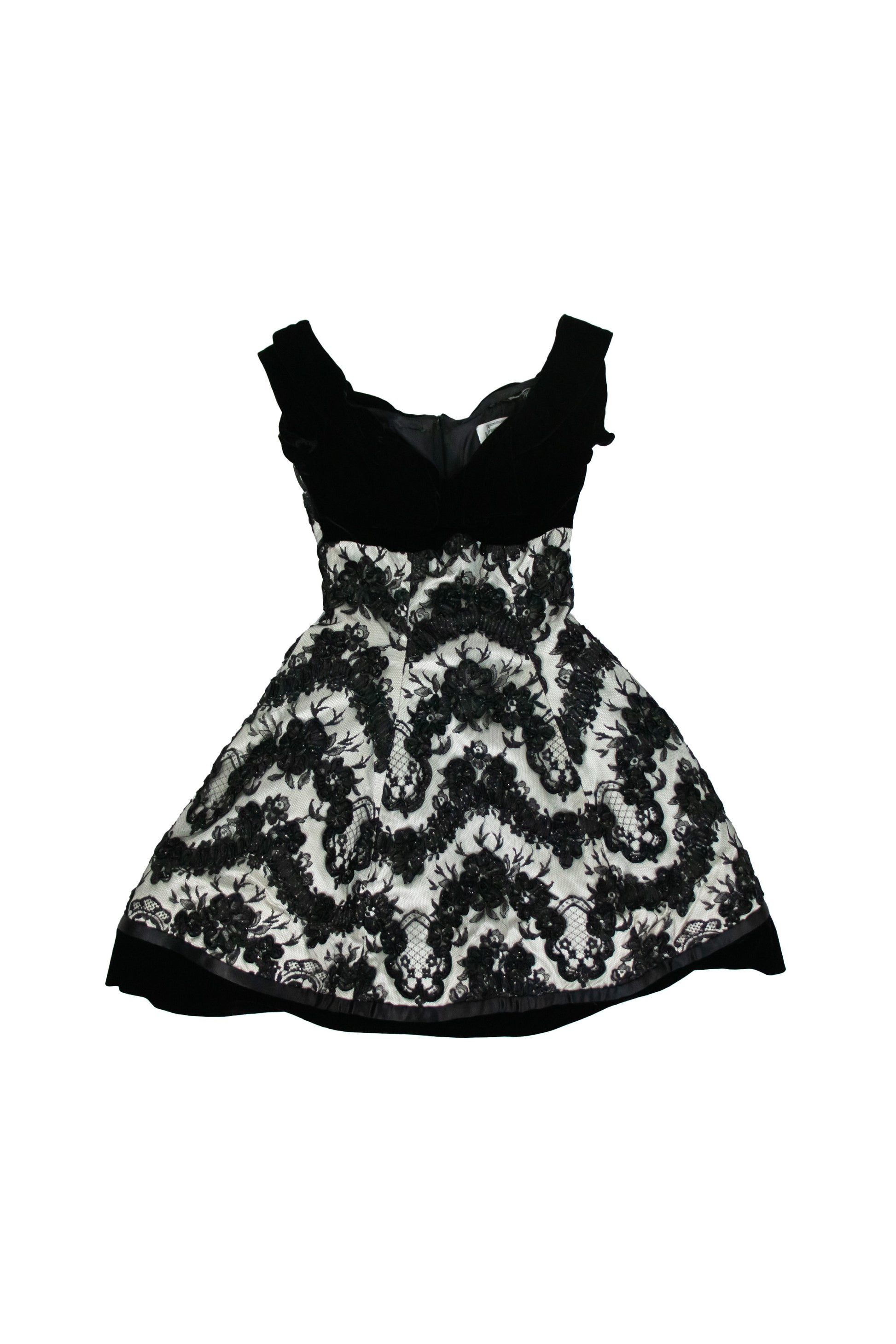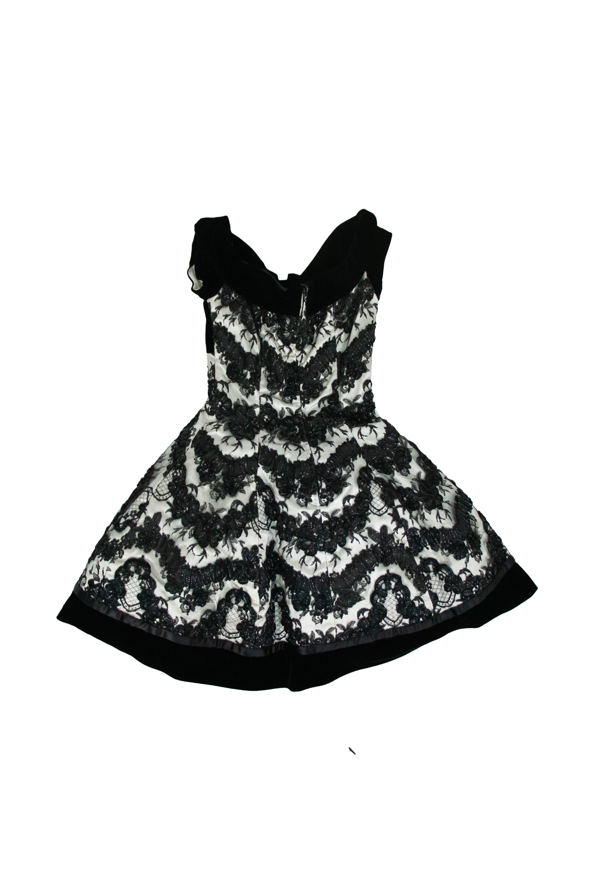 Crafted with lace and velvet, this off-the-shoulder fit and flare dress is designed to command attention. Wear it with a black clutch and strappy sandals to your next party.