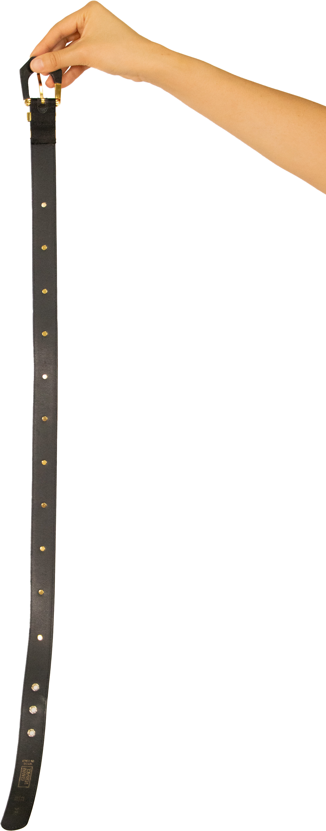 It's actually Verslay. Made between 1992 to 1994, this vintage silk Versace belt features crystallized Medusas and a Western-inspired buckle. It looks similar to a design Gianni launched for FW 1994.