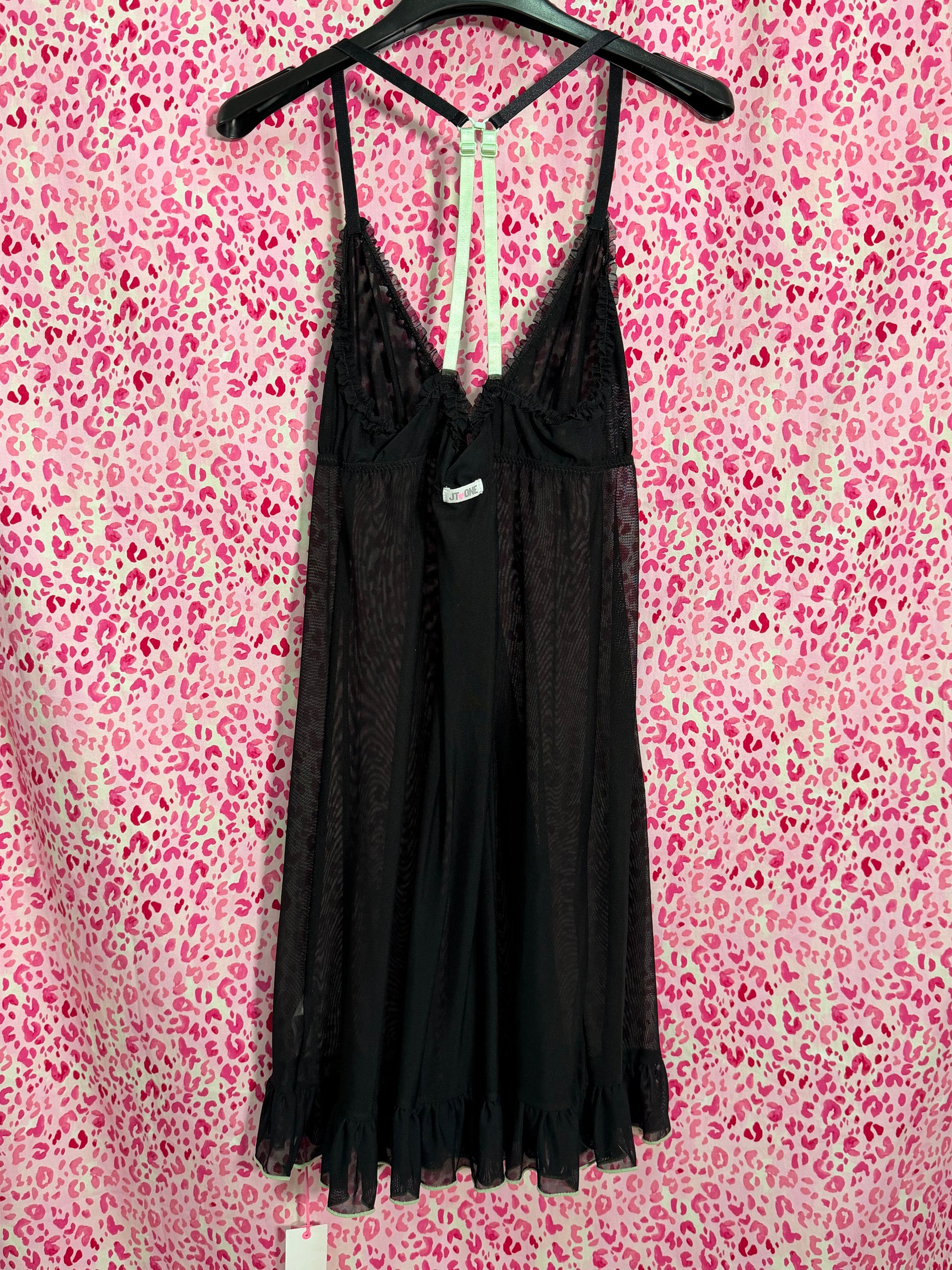 Sweet but definitely not innocent A sheer mesh babydoll with ruffle trims and lime accents — think early-2000s club night meets pop princess energy. Style it over a mini bra , or layer it with denim for that “I didn’t try, I just woke up hot” look.