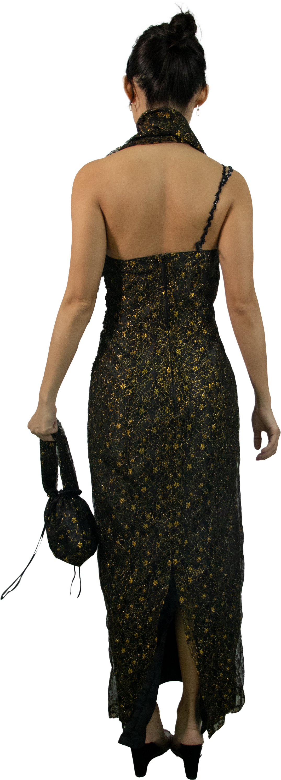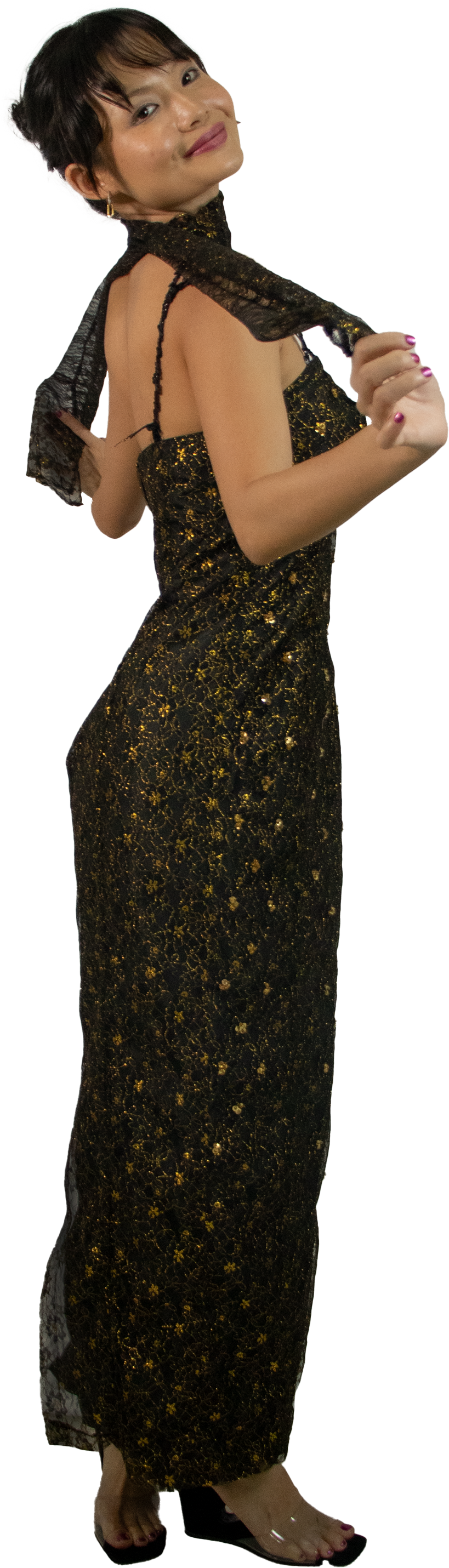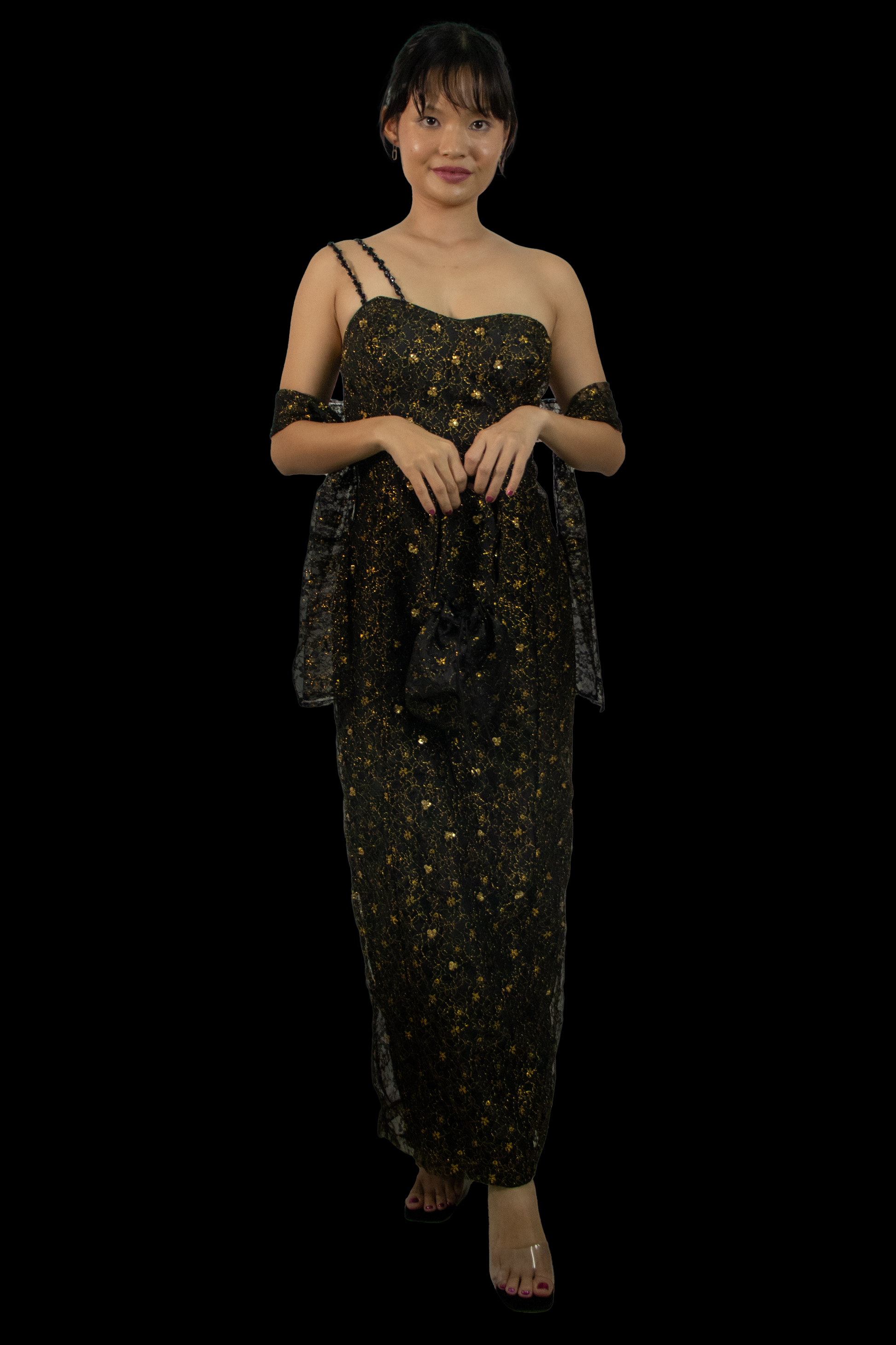 Y2K Black and Gold Demi Sequin One Shoulder Gown