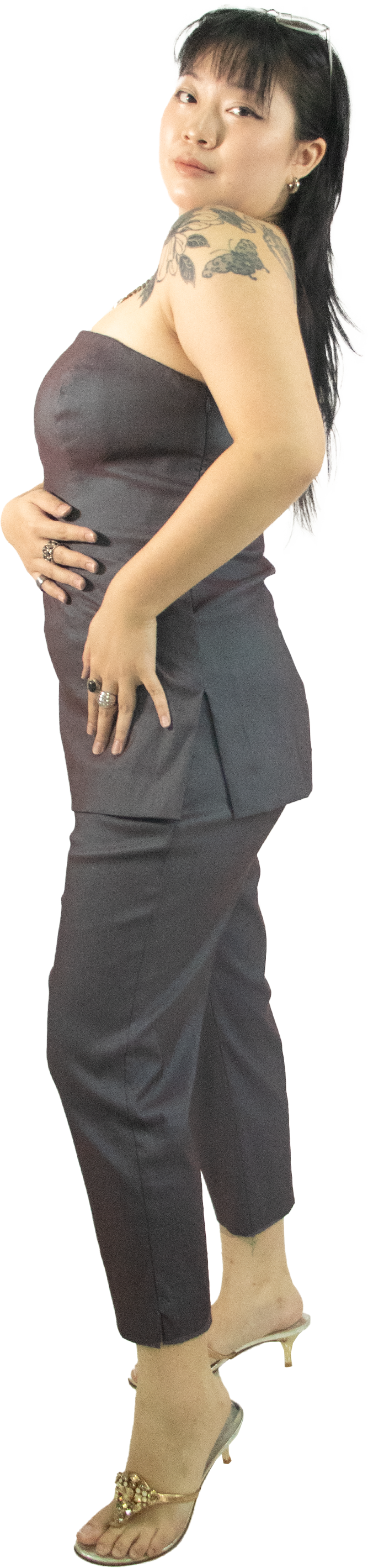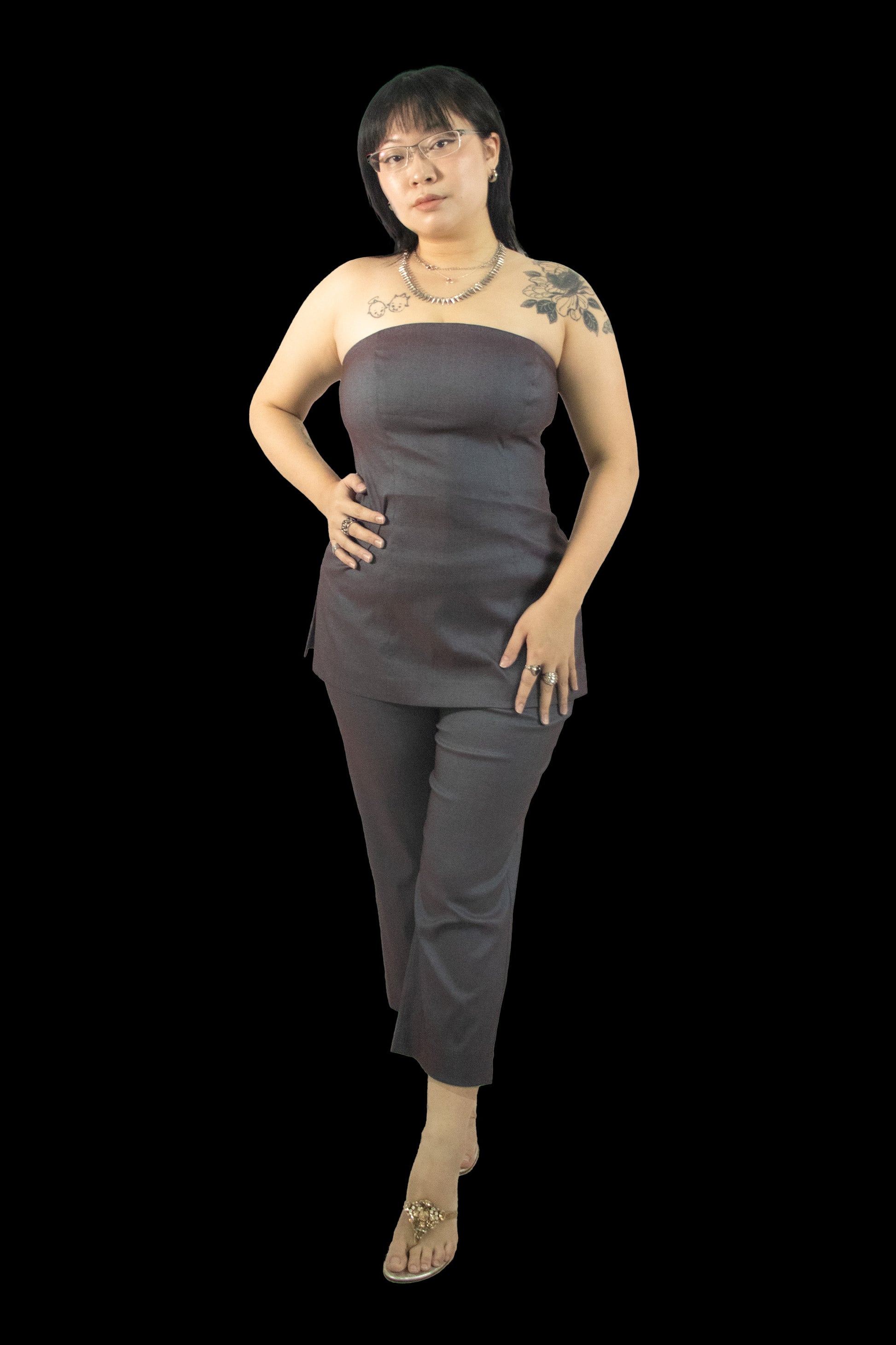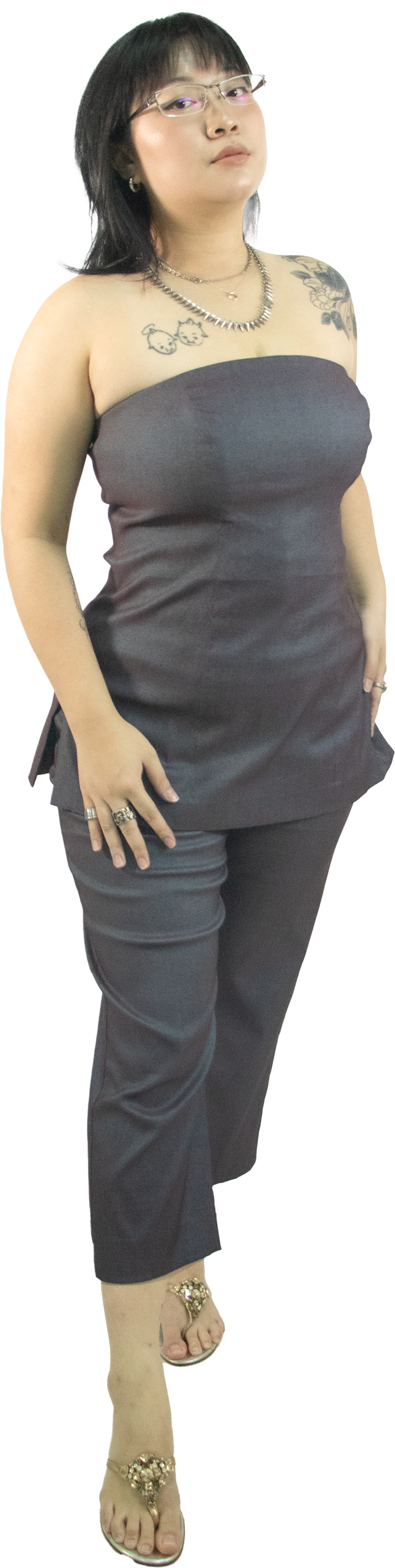 You can wear both of them like that or you can style the strapless top with a pair of jeans for a Y2K going out look! The pants can be styled with a band tee for a badass rockstar look.